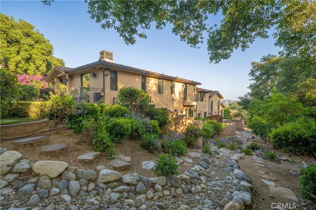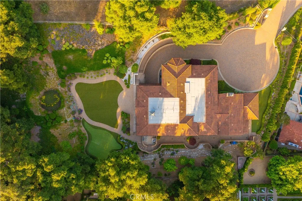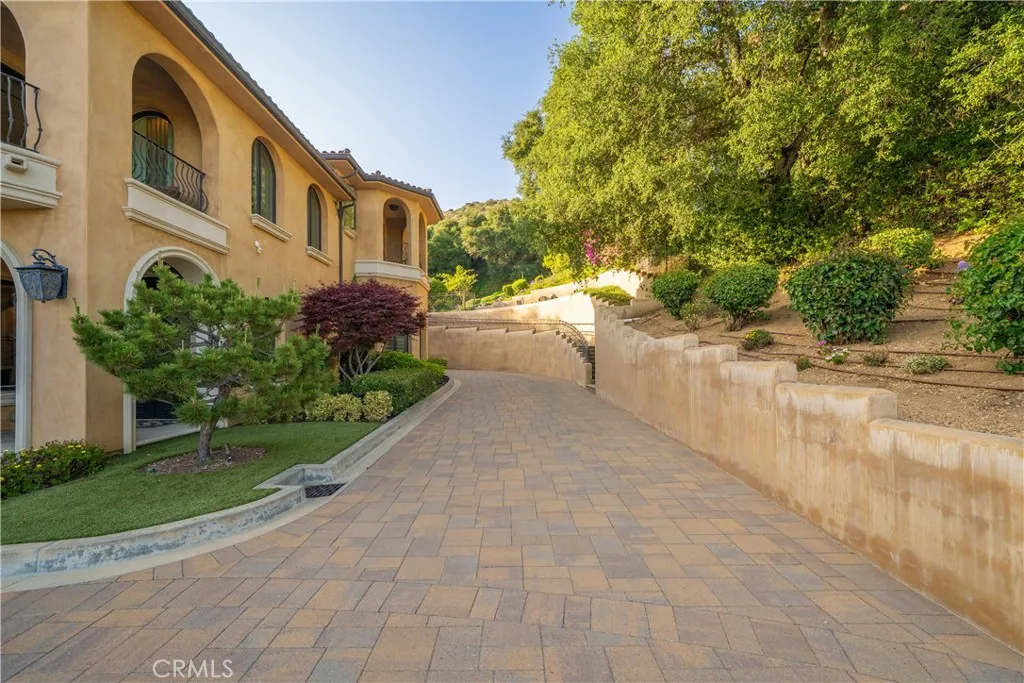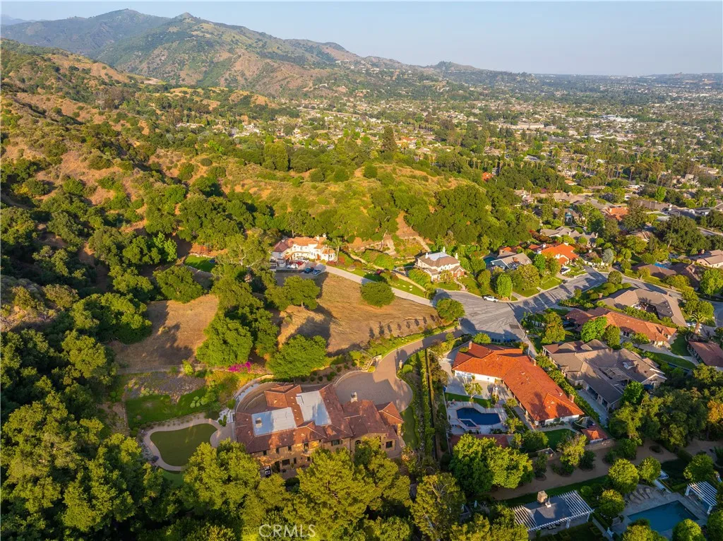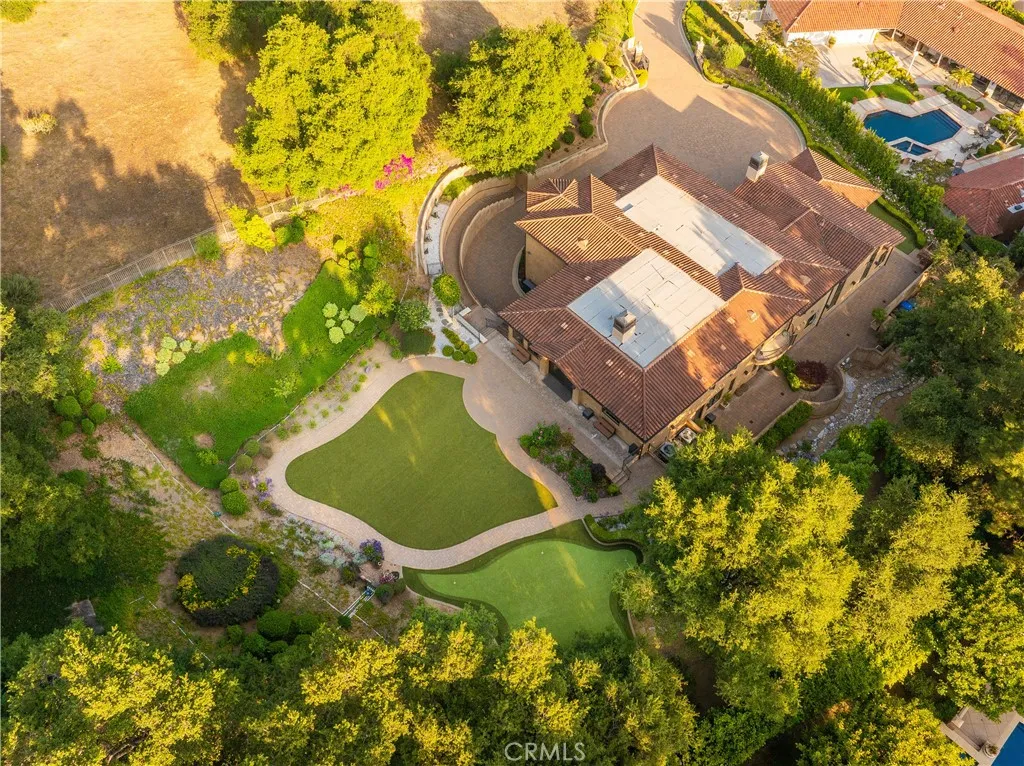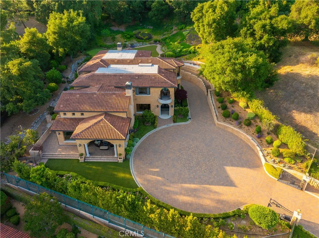 Experience the height of luxury and privacy in this breathtaking custom estate nestled in the foothills of North Glendora. Built in 2012 and situated behind private gates on a spacious one-acre lot, this one-of-a-kind residence offers an extraordinary blend of elegance, comfort, and cutting-edge smart technology, all set against a stunning backdrop of panoramic city and mountain views. Boasting 6 bedrooms, 5.5 bathrooms, and nearly 6,800 square feet of sophisticated living space, every inch of this home showcases exquisite craftsmanship and the finest materials. Enter through grand double iron doors into a dramatic formal entry, where a designer chandelier and gleaming finishes set the tone. The heart of the home is the expansive great room featuring high ceilings, a custom fireplace, wet bar, and French doors that open to a serene-covered patio. The adjacent state-of-the-art kitchen is a chef's dream, complete with a Miele appliance suite, Bulthaup cabinetry, a central island, and a fully equipped wok kitchen with a built-in fryer, super burner, and Viking hood. Retreat to the luxurious primary suite with a private sitting area, balcony overlooking the city, spa-inspired bathroom with a steam shower, air jet tub, and dual vanities. Additional highlights include a private office, game/theater room with wet bar and fireplace, and a spacious playroom. Modern convenience meets timeless elegance with a full home automation system, integrated sound throughout, custom window coverings, and even a commercial-grade elevator. The attached six-car garage (approx. 1,400 SF) provides ample space for vehicles and storage. Outside, the park-like grounds offer a peaceful escape with mature oak trees, fruit trees, a putting green, and plenty of space to relax or entertain. Truly a one-of-a-kind property in one of Glendora's most prestigious neighborhoods. Designed for discerning buyers who demand the very best - this home must be seen to be fully appreciated.