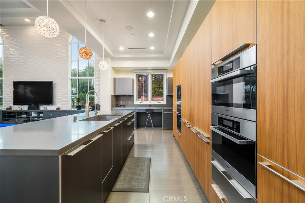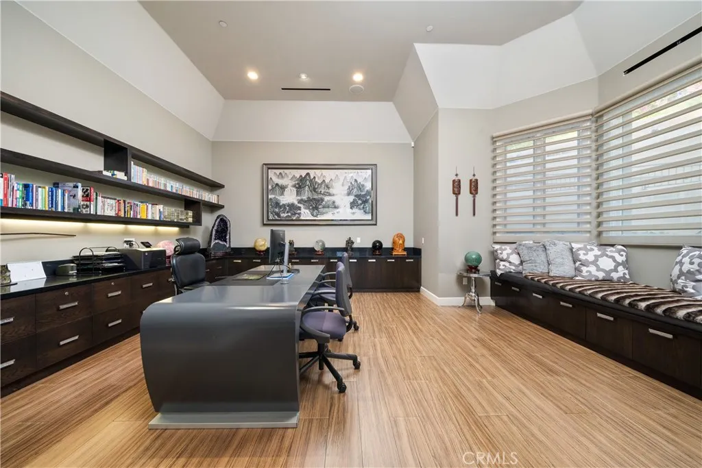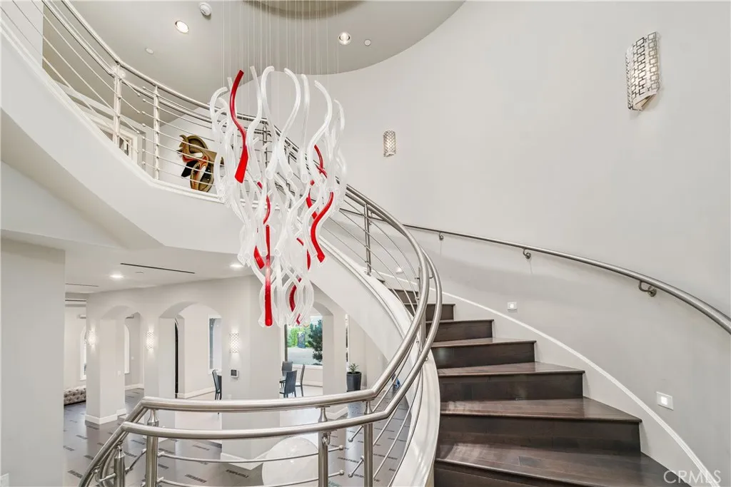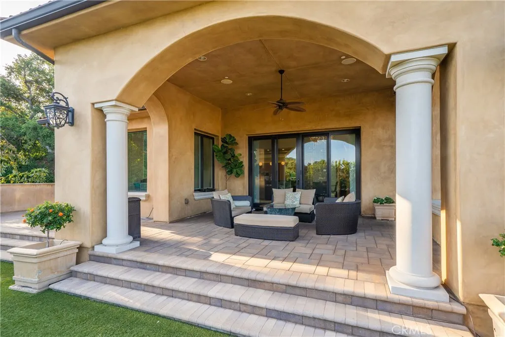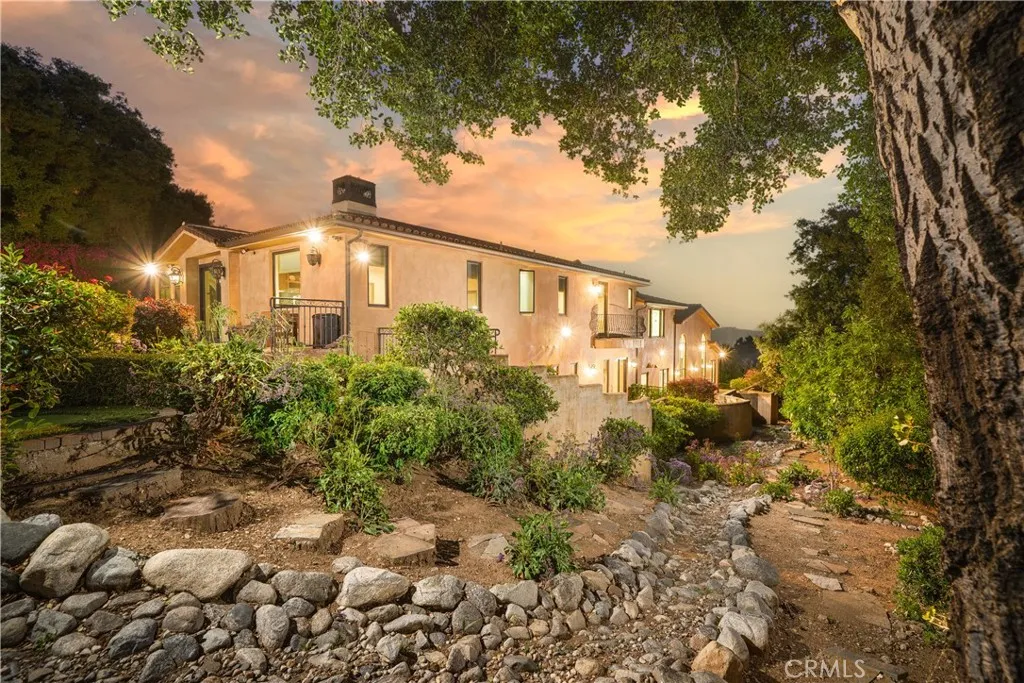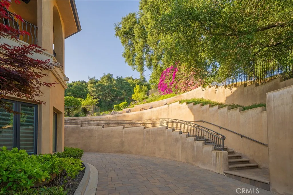 Experience the height of luxury and privacy in this breathtaking custom estate nestled in the foothills of North Glendora. Built in 2012 and situated behind private gates on a spacious one-acre lot, this one-of-a-kind residence offers an extraordinary blend of elegance, comfort, and cutting-edge smart technology, all set against a stunning backdrop of panoramic city and mountain views. Boasting 6 bedrooms, 5.5 bathrooms, and nearly 6,800 square feet of sophisticated living space, every inch of this home showcases exquisite craftsmanship and the finest materials. Enter through grand double iron doors into a dramatic formal entry, where a designer chandelier and gleaming finishes set the tone. The heart of the home is the expansive great room featuring high ceilings, a custom fireplace, wet bar, and French doors that open to a serene-covered patio. The adjacent state-of-the-art kitchen is a chef's dream, complete with a Miele appliance suite, Bulthaup cabinetry, a central island, and a fully equipped wok kitchen with a built-in fryer, super burner, and Viking hood. Retreat to the luxurious primary suite with a private sitting area, balcony overlooking the city, spa-inspired bathroom with a steam shower, air jet tub, and dual vanities. Additional highlights include a private office, game/theater room with wet bar and fireplace, and a spacious playroom. Modern convenience meets timeless elegance with a full home automation system, integrated sound throughout, custom window coverings, and even a commercial-grade elevator. The attached six-car garage (approx. 1,400 SF) provides ample space for vehicles and storage. Outside, the park-like grounds offer a peaceful escape with mature oak trees, fruit trees, a putting green, and plenty of space to relax or entertain. Truly a one-of-a-kind property in one of Glendora's most prestigious neighborhoods. Designed for discerning buyers who demand the very best - this home must be seen to be fully appreciated.
