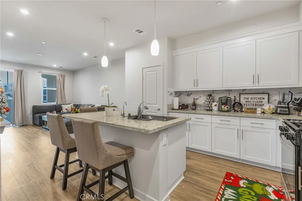 Beautiful newer-built tri-level townhome in the highly sought-after Stafford Place Community of Covina. This spacious 3 bedroom, 3 full bath home offers an open, light-filled floor plan perfect for modern living. The chef-inspired kitchen features a large island, stone countertops, and sleek white cabinetry, opening to the expansive great room and private balcony - ideal for entertaining or relaxing. The main level includes a versatile bedroom and full bath, great for guests, extended family, or a home office. Upstairs, the primary suite offers walk-in closets and an en-suite bath, while the third bedroom also features its own full private bath for added convenience. Additional highlights include a tandem garage with ample storage, beautifully maintained community amenities with a trellis and BBQ area, a low tax rate, and the benefits of newer construction for modern comfort and efficiency. Located close to shopping, dining, and major freeways, this move-in-ready home delivers style, convenience, and exceptional value. A fantastic opportunity in a desirable Covina community!