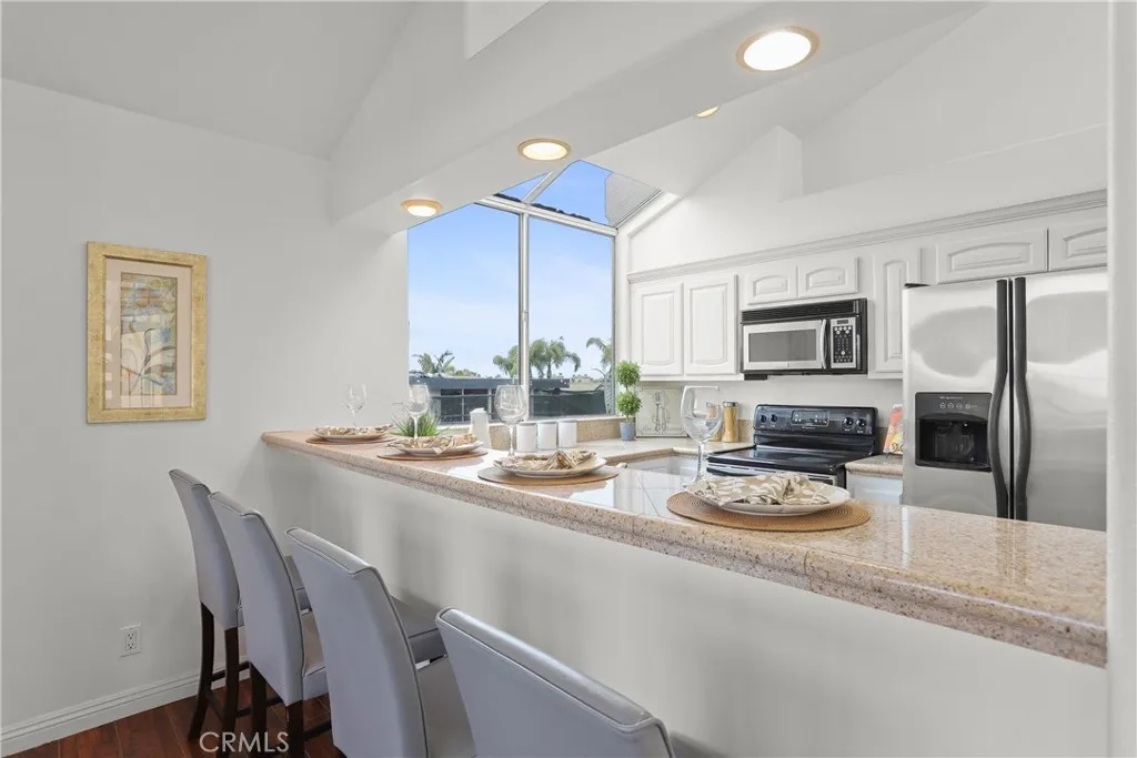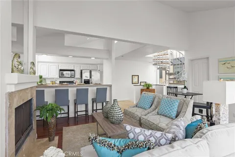 Nestled in the highly coveted neighborhood of Sunset Beach in Huntington Beach, this stylish tri-level condo at 16778 Bayview Dr #B delivers a true California coastal lifestyle. With 2 bedrooms, 2 full bathrooms, and 1,196 sq ft of thoughtfully designed living space, this home offers exceptional indoor-outdoor flow and a layout tailored for both comfort and entertaining. The second level features two spacious bedrooms, including a primary suite with its own full bath, and a second full bathroom that serves the guest bedroom. A convenient laundry closet is also located on this level - no lugging baskets up and down stairs. On the third floor, the heart of the home unfolds: an open-concept kitchen with granite countertops, stainless steel appliances, and bar seating seamlessly connects to a light-filled living room with a cozy fireplace and its own balcony - ideal for morning coffee or sunset wine. A spiral staircase adds a unique architectural element and leads to the show-stopping rooftop deck with panoramic, filtered views of the harbor and ocean - an entertainer's dream. Additional features include a second balcony, and a rare two-car tandem garage with direct access. Whether you're working remotely, hosting guests, or simply craving a peaceful retreat by the beach, this home offers the versatility and amenities that make it stand out. Located close from the sand in Sunset Beach - a community known for its wide, uncrowded shoreline, walkable greenbelt, charming eateries, and relaxed vibe - you'll be surrounded by some of Southern California's most iconic coastal attractions. The Bolsa Chica Ecological Reserve, PCH boutiques, waterfront dining, and the Sunset Beach Art Festival are all within easy reach. This is more than a home - it's a beachside sanctuary where you can live, work, and play in style. Welcome to 16778 Bayview Dr #B, where every day feels like a vacation.