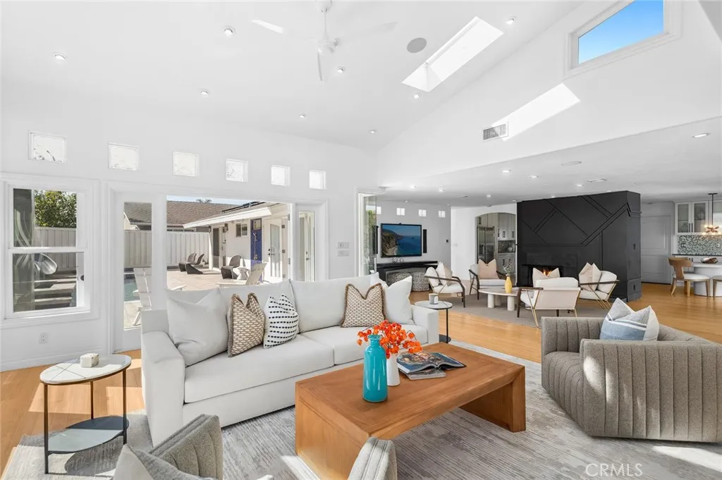 Located in Mesa Verde s inner loop, this single story gem has it all! Privacy, ambiance, space, a beautiful pool and spa, and ADU studio great for in-laws or rental income. From entering the enclosed front courtyard with a glass tile waterfall to the brightly lit interior with high ceilings, this home feels peaceful. Light bamboo floors throughout and several skylights add natural appeal. An accent wall between the kitchen and family room has fireplaces on each side. The huge family room has a high shed ceiling with skylights and opens up into the backyard, where a pool and spa with waterfall and slide awaits summer fun and relaxation. Two outdoor showers with hot and cold water are convenient for rinsing off after the pool or a day at the beach. An awning extends over part of the patio for shade or retracts for sun. The home is currently configured with a primary suite and two secondary rooms, while the 4th bedroom near the entry is being used as an office and the large 5th bedroom is being used as an ADU studio. The ADU has a separate outdoor entrance and an interior entrance that can be closed off and locked from the rest of the home. It has a kitchenette and a history of consistent rental income. A vaulted ceiling creates an open feeling. The ADU has its own AC, while the rest of the home is ventilated with ceiling fans and gentle ocean breezes. The primary suite has dual sinks, a jet bathtub and a separate shower. The primary and office have doors opening out onto the backyard and built-in storage. The large garage has nicely finished ceiling shelving, as well as wall cabinetry for plenty of storage space without loss of parking, and a 220 volt Bosch EV charging system compatible with a Tesla vehicle. The home was completely remodeled in 2015, and the water heater and Samsung refrigerator are new. The home is pre-wired with an 8-channel sound system, so different music can be played in various rooms, and is hardwired throughout with internet. For ease of use, the water features and pool/spa heating are controlled by a phone app. A video security system provides views of the street, while solar panels significantly reduce or eliminate electricity costs, depending upon usage. The solar system is also fully paid off. This spacious property offers a great opportunity to enjoy easy beach living and is in close proximity to shopping, restaurants, schools, parks, Mesa Verde Country Club, freeway access and beaches.