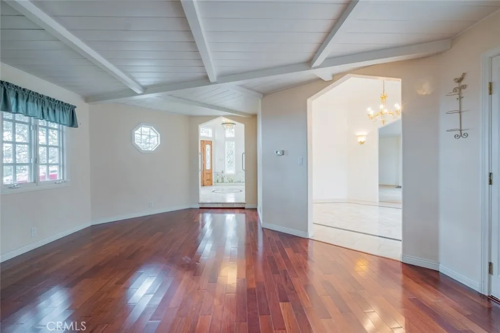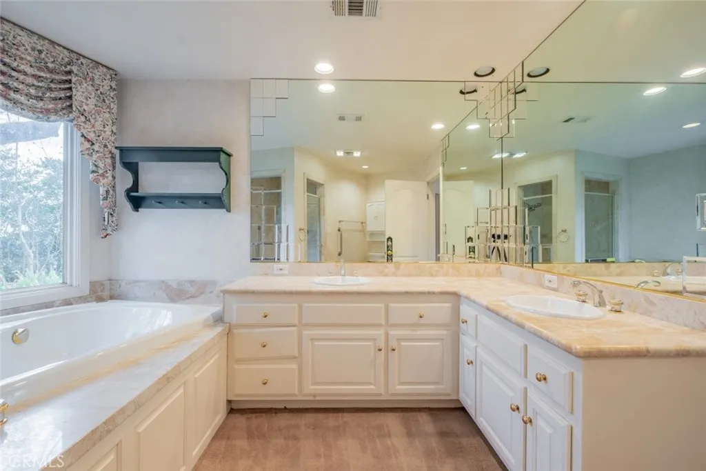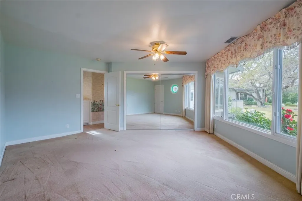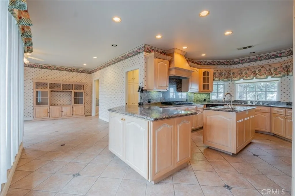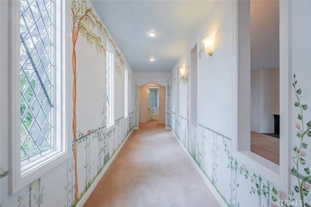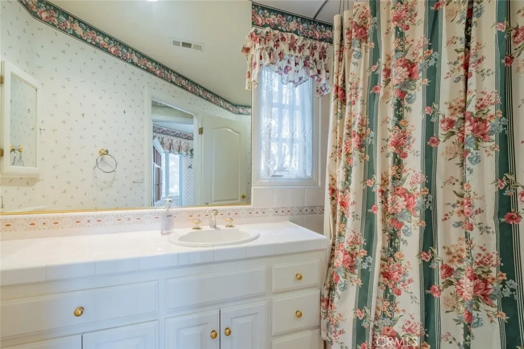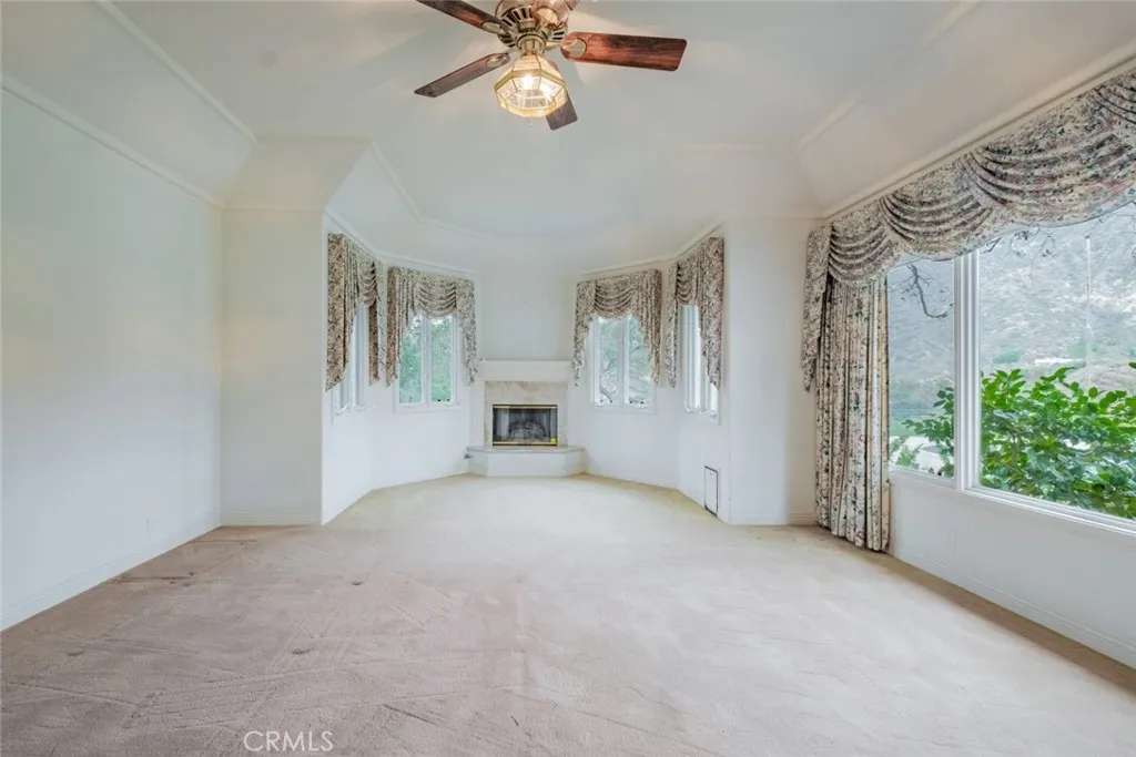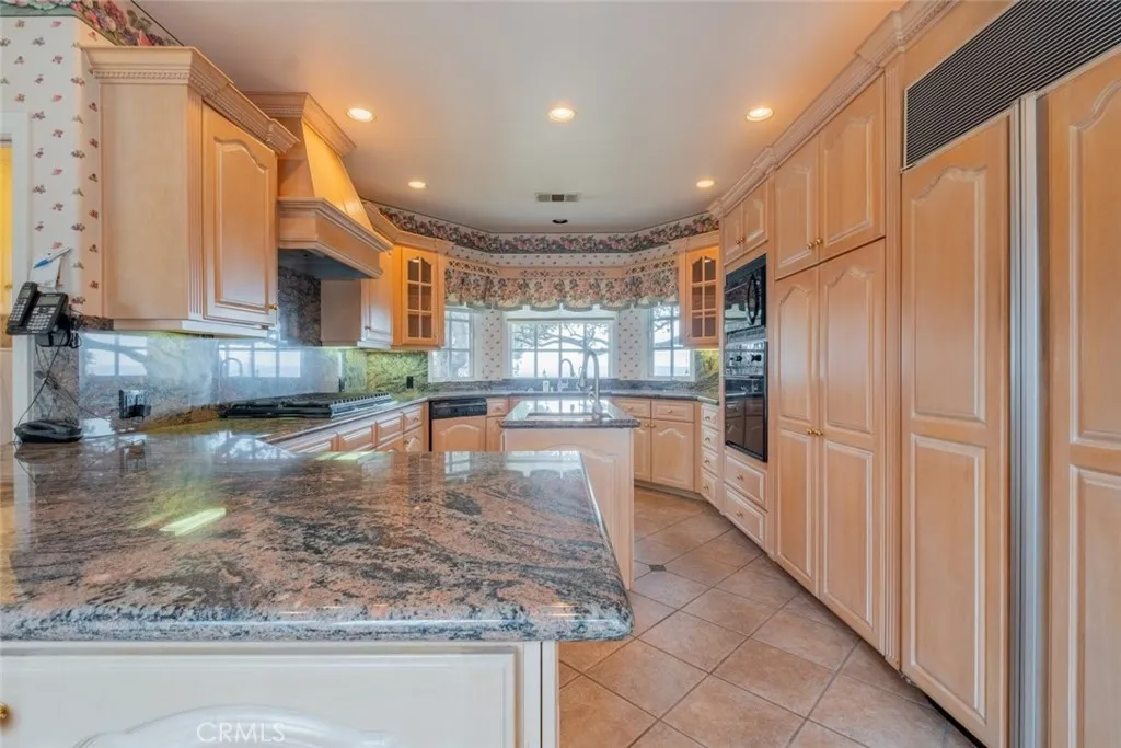 Tucked behind the gates of exclusive Bradbury Oaks Estates, this stunning sanctuary offers unparalleled privacy, elegance, and breathtaking 360-degree canyon & city light views. Situated on over two acres of beautifully landscaped grounds, the property features majestic oak trees, fruit trees, and terraced back gardens. A private road and gated driveway leads to an expansive Chateau that was reimagined in 1995, with grand cut-stone and stucco fa ade, where an octagonal entry with leaded glass sidelights and transom sets a sophisticated tone. A picturesque stone bridge over a koi pond with wrought iron and river rock accents welcomes you home. Inside, the elegant formal foyer showcases inlaid marble flooring, custom stenciling, and arched doorways. The step-down formal living room features a corner fireplace, wall sconces, carpeting, and French doors leading to the backyard. The intimate family room offers beamed ceilings, a grey brick fireplace, cherry wood flooring, and an octagonal window. The French Normandy style gourmet kitchen is a chef s delight, complete with a center island with prep sink, granite countertops, stone tile flooring, ample custom wood cabinetry, a built-in Sub-Zero refrigerator, a six-burner Russell Range cooktop with hood, built-in oven and microwave, and an attached breakfast room. The octagonal formal dining room exudes elegance with marble flooring and black inlay. The west wing includes a spacious bedroom/office with built-in workspace with mirrored closet doors, a hallway bath with a jetted tub & ample linen storage, as well as a luxurious primary suite featuring a built-in dresser, wet bar, walk-in closet, a fireplace, and a spa-like bath with dual sinks, a jetted tub, and separate shower. The east wing offers another well-appointed bedroom, a bathroom with jetted tub and brass fixtures, and access to the attached 2-car garage with a rear pass-through door. The expansive backyard is an entertainer s dream, boasting a large swimming pool with diving board, an outdoor kitchen & BBQ area, an inviting stone patio, brick-accented sidewalks, and a charming tree swing. A gated circular driveway offers ample parking. Additional highlights include an underground wine cellar, separate laundry room, concrete tile lifetime roof, central air & heat, recessed lighting, central vacuum, custom window coverings, and water softening system. This exceptional estate blends luxury, comfort, and natural beauty in a prestigious setting!