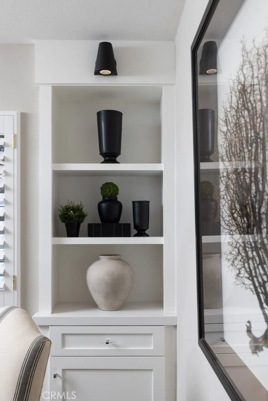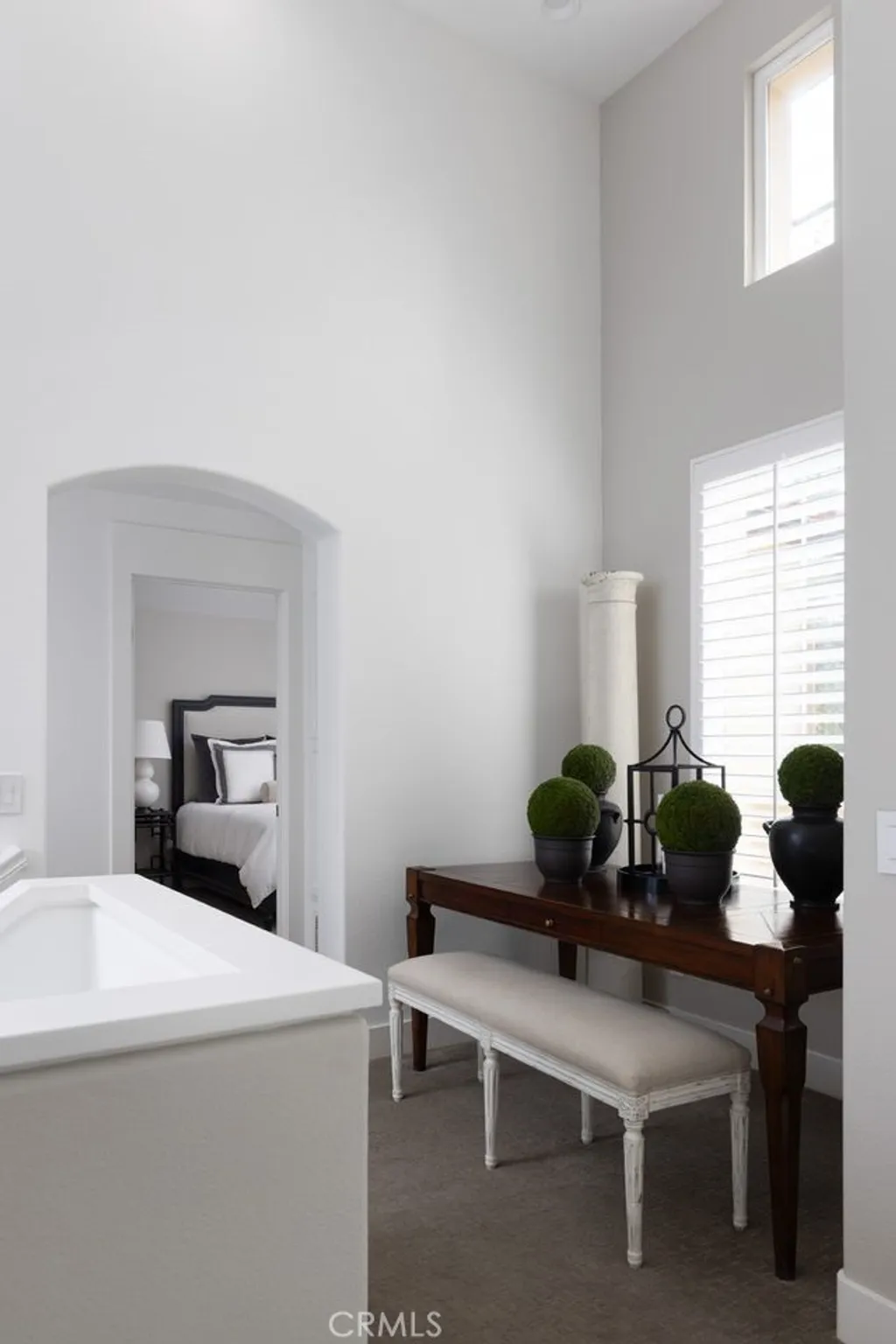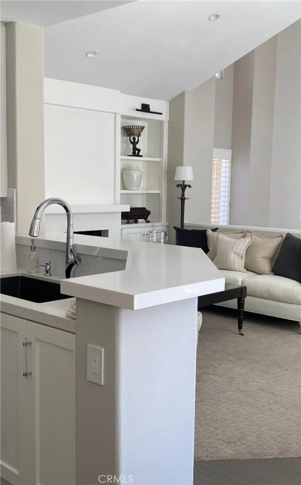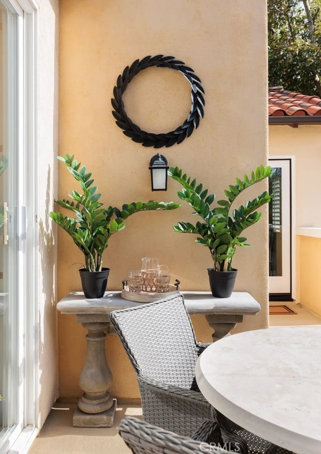 This professionally curated 2-bed, 2-bath home spans approx.1,326 sqft. and offers a seamless blend of coastal elegance and modern comfort. This coveted, corner location is very quiet with no neighbors above or below, in the exclusive gated community of Trovare in Newport Coast. The open-concept layout is enhanced by vaulted ceilings, custom wood beams, rich lacquered moldings, and abundant natural light. The gourmet kitchen features white cabinetry, quartz countertops, subway tile backsplash, stainless steel appliances, and flows into a spacious living and dining area with a fireplace and direct access to a private deck, ideal for al fresco dining or relaxed entertaining. Every inch has been thoughtfully upgraded. All recessed lighting has been replaced with high-efficiency 3000K LED fixtures, and every switch, outlet, and dimmer has been modernized for optimal lighting control. The living and dining areas showcase bespoke built-ins with added storage and quartz shelving, while the fireplace wall features black absolute granite surround, a wood-paneled mantle, lacquered cabinetry, and elegant shelving - creating a striking focal point. The primary suite offers a customized walk-in closet, sliding door entry, and access to the upstairs deck via a new insulated glass door. The en-suite bathroom includes new recessed lighting, updated fixtures, quartz countertops, new sinks and faucets, and custom-framed mirrors that extend to the ceiling. The secondary bathroom has been remodeled with large-format porcelain tile, a new quartz vanity top, oversized mirror, updated lighting, and modern fixtures. In the second bedroom, a tray ceiling with detailed molding and recessed lighting adds architectural interest. Additional upgrades include new custom white vent covers, oversized chrome door levers and hinges, updated cabinet hardware, a new GE dishwasher, garbage disposal, and a custom gas fireplace log set. The oversized 2-car garage features a new epoxy floor and built-in cabinetry for optimal storage. Trovare is in the process of painting these lovely homes, a soft Neutral palatte. Residents of Trovare enjoy exclusive access to resort-style amenities, including a saltwater pool, spa, tennis and pickleball courts, clubhouse, and manicured greenbelts. Ideally located near Crystal Cove, Pelican Hill, Fashion Island, and Newport's world-renowned beaches and dining, this turnkey home offers thoughtful customization, designer elegance, and elevated coastal living.