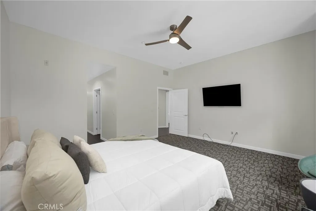 Welcome to the largest available residence at The Belvedere in Central Park West, where modern luxury meets urban convenience in the heart of Irvine's Financial District. This highly upgraded, single-level 2-bedroom, 2.5-bath flat is ideally situated on a premium second-floor location with panoramic views and just steps from the clubhouse.This sophisticated home features an open-concept floor plan, soaring 10-foot ceilings, and abundant natural light. The chef's kitchen boasts European cabinetry, a large center island, and ample counter space - perfect for cooking and entertaining. The expansive living area opens to a private balcony ideal for enjoying sunset and city views.The primary suite offers a luxurious retreat with a spa-inspired bath, custom glass tile finishes, and a spacious walk-in closet. Thoughtful upgrades throughout include beautiful porcelain tile flooring, slate accent walls, designer ceiling fans, custom carpet in bedrooms, LED lighting, and elegant glass tile accents in bathrooms.Additional features include a private deck, two gated subterranean parking spaces, and private storage.Enjoy access to Central Park West's 8,000 sq. ft. resort-style amenities, including a state-of-the-art fitness center, yoga studio, two saline pools, outdoor spas, BBQ pavilions, outdoor fireplaces, pickleball court, and a luxurious clubhouse.Centrally located just minutes from UCI, South Coast Plaza, Fashion Island, John Wayne Airport, and Orange County's top beaches, dining, and shopping - this exceptional home offers the perfect blend of sophistication, comfort, and convenience.