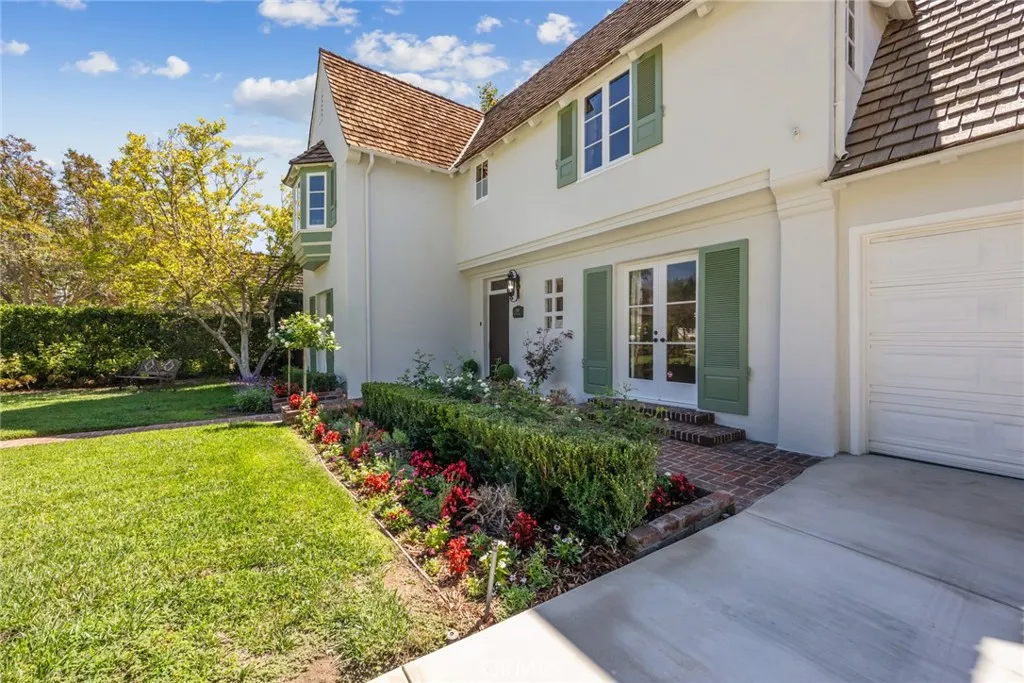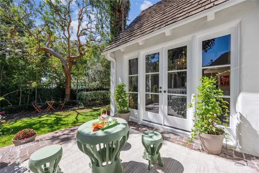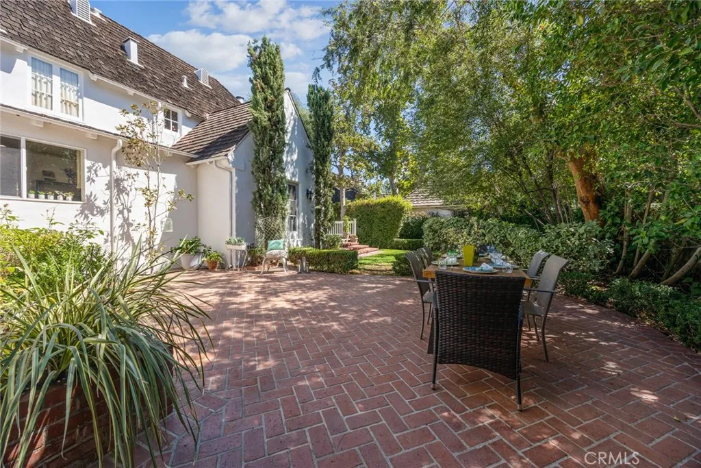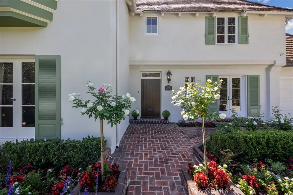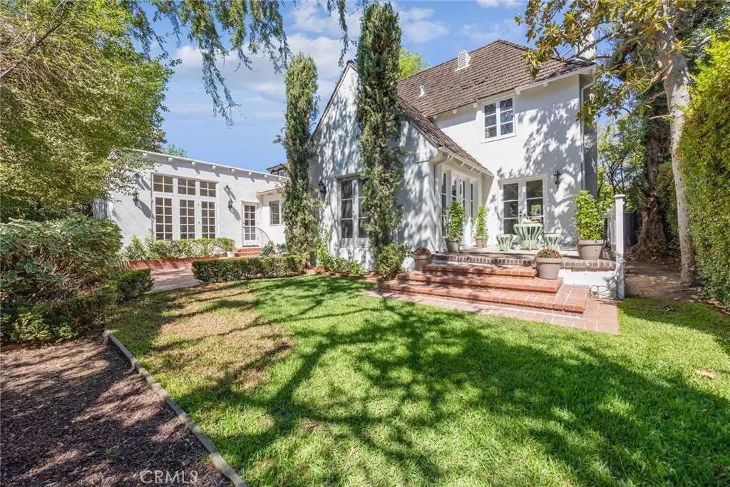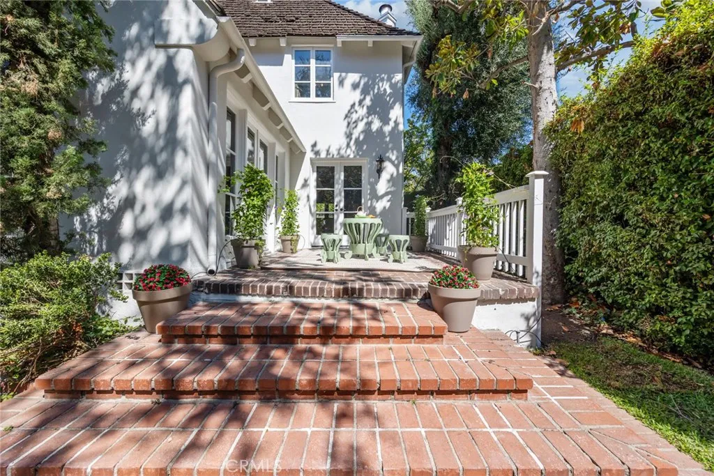Designed by master architect Roland E. Coate and built in collaboration with esteemed builder Lee S. Davis, this captivating French Normandy-style home is a rare example of early California architectural excellence. Professionally measured at 2,590 sq ft, it combines classic European charm with relaxed indoor-outdoor living, reflecting Coate's visionary philosophy that The patio is the heart of the California house, as noted in House & Garden magazine, 1931. The home's graceful composition features steeply pitched rooflines and a soaring 16-foot high-hipped ceiling with exposed wood beams in the formal dining room. The living room centers on a grand fireplace and is framed by multi-pane windows that fill the space with natural light. Every first-floor room opens through French doors to the surrounding gardens, creating seamless indoor-outdoor flow. Architectural details abound, including arched entryways, crown molding, and crystal chandeliers that enhance the refined character throughout. The floor plan flows effortlessly, balancing open spaces with cozy, intimate areas. Built-in Bluetooth-enabled speakers wired throughout provide an elevated living experience, perfect for entertaining or relaxing. Recent updates include new landscaping, fresh interior and exterior paint, upgraded electrical systems, bathroom mirrors, plumbing, and lighting fixtures (full list available). Step outside to a private brick terrace framed by manicured gardens and mature trees - an idyllic setting for morning coffee, afternoon reading, or romantic dinners. A thoughtful exit from the family room and kitchen opens to a brick-paved patio, perfect for sunset entertaining and gatherings under the stars. Upstairs, spacious bedrooms offer serene mountain and garden views. Situated on a generous 9,256 sq ft lot, a new 70-foot concrete driveway provides parking for four vehicles and leads to an attached two-car garage. A 140 sq ft California basement is also included. This is a rare opportunity to own a piece of architectural history in one of San Marino's most coveted neighborhoods. The home masterfully blends classic charm with modern comfort and gracious hospitality. Reflecting the enduring legacy of Roland E. Coate, it offers a lifestyle rooted in beauty, tranquility, and timeless appeal. Conveniently located near the Huntington Library, Caltech, and within the award-winning San Marino School District, this exceptional residence is truly a cherished treasure.