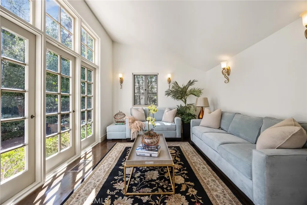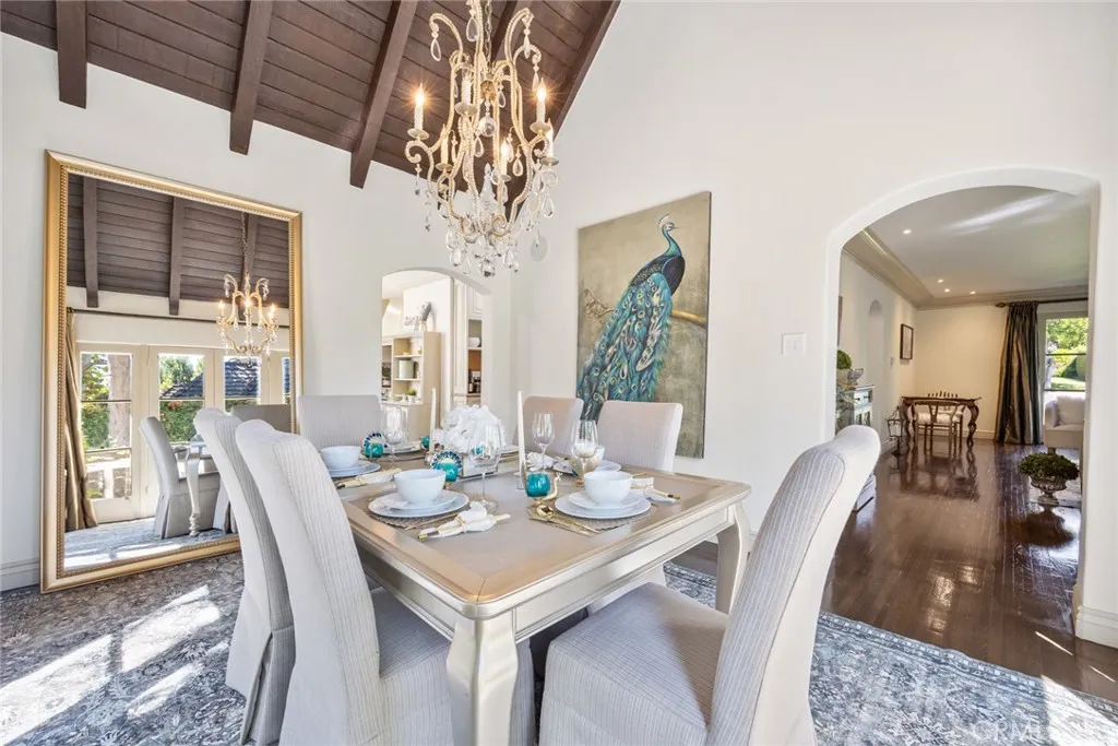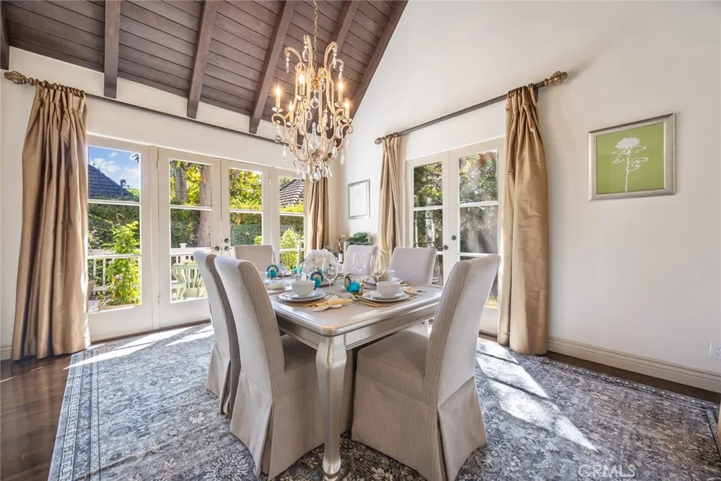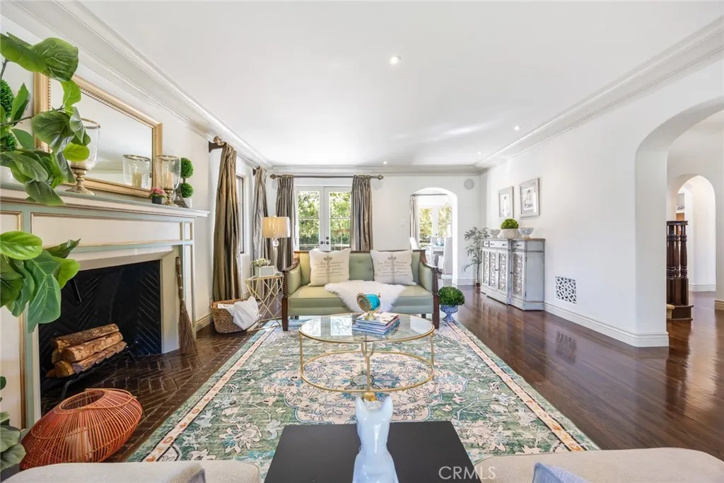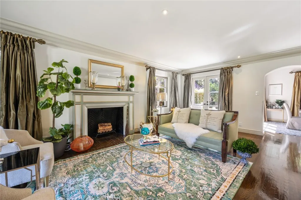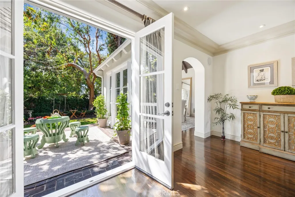 Designed by master architect Roland E. Coate and built in collaboration with esteemed builder Lee S. Davis, this captivating French Normandy-style home is a rare example of early California architectural excellence. Professionally measured at 2,590 sq ft, it combines classic European charm with relaxed indoor-outdoor living, reflecting Coate's visionary philosophy that The patio is the heart of the California house, as noted in House & Garden magazine, 1931. The home's graceful composition features steeply pitched rooflines and a soaring 16-foot high-hipped ceiling with exposed wood beams in the formal dining room. The living room centers on a grand fireplace and is framed by multi-pane windows that fill the space with natural light. Every first-floor room opens through French doors to the surrounding gardens, creating seamless indoor-outdoor flow. Architectural details abound, including arched entryways, crown molding, and crystal chandeliers that enhance the refined character throughout. The floor plan flows effortlessly, balancing open spaces with cozy, intimate areas. Built-in Bluetooth-enabled speakers wired throughout provide an elevated living experience, perfect for entertaining or relaxing. Recent updates include new landscaping, fresh interior and exterior paint, upgraded electrical systems, bathroom mirrors, plumbing, and lighting fixtures (full list available). Step outside to a private brick terrace framed by manicured gardens and mature trees - an idyllic setting for morning coffee, afternoon reading, or romantic dinners. A thoughtful exit from the family room and kitchen opens to a brick-paved patio, perfect for sunset entertaining and gatherings under the stars. Upstairs, spacious bedrooms offer serene mountain and garden views. Situated on a generous 9,256 sq ft lot, a new 70-foot concrete driveway provides parking for four vehicles and leads to an attached two-car garage. A 140 sq ft California basement is also included. This is a rare opportunity to own a piece of architectural history in one of San Marino's most coveted neighborhoods. The home masterfully blends classic charm with modern comfort and gracious hospitality. Reflecting the enduring legacy of Roland E. Coate, it offers a lifestyle rooted in beauty, tranquility, and timeless appeal. Conveniently located near the Huntington Library, Caltech, and within the award-winning San Marino School District, this exceptional residence is truly a cherished treasure.