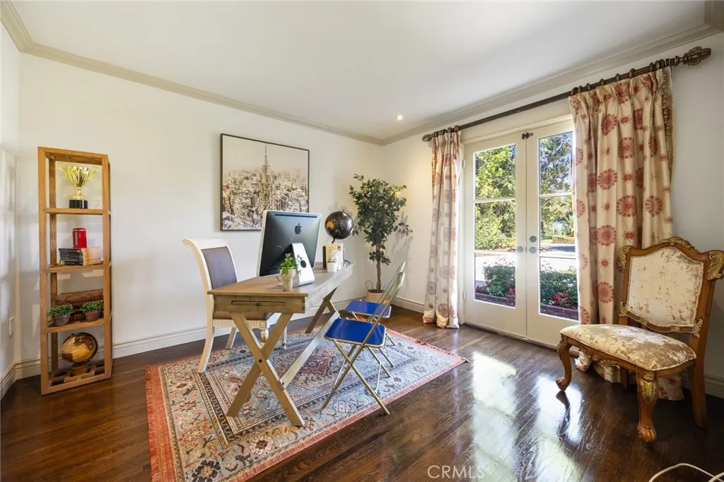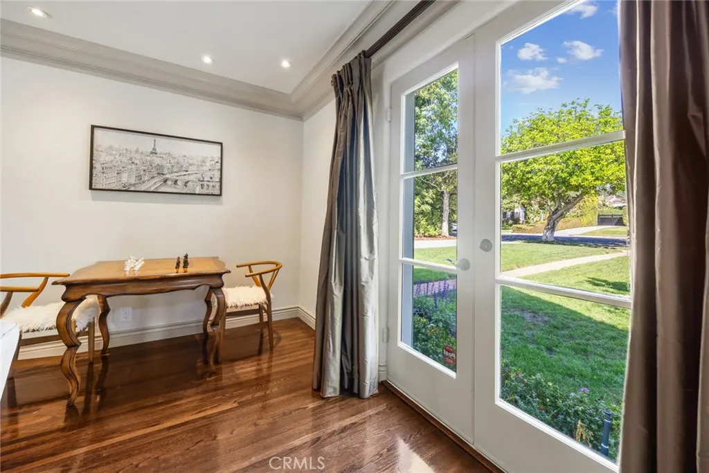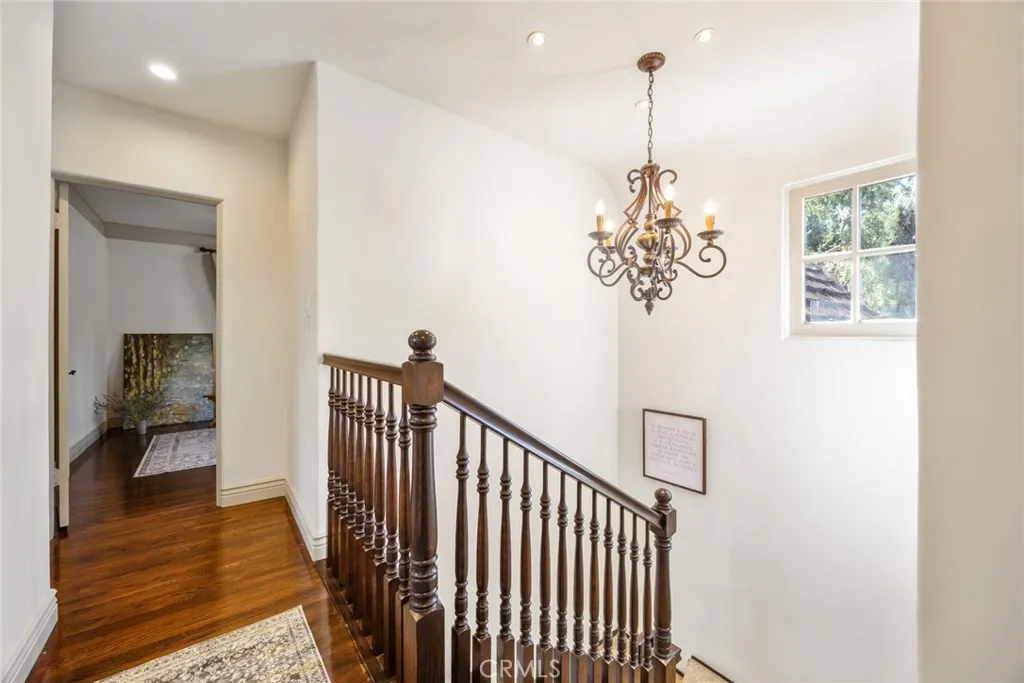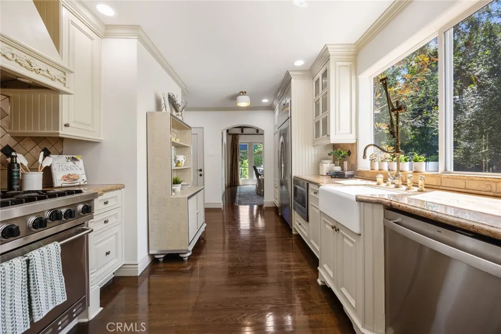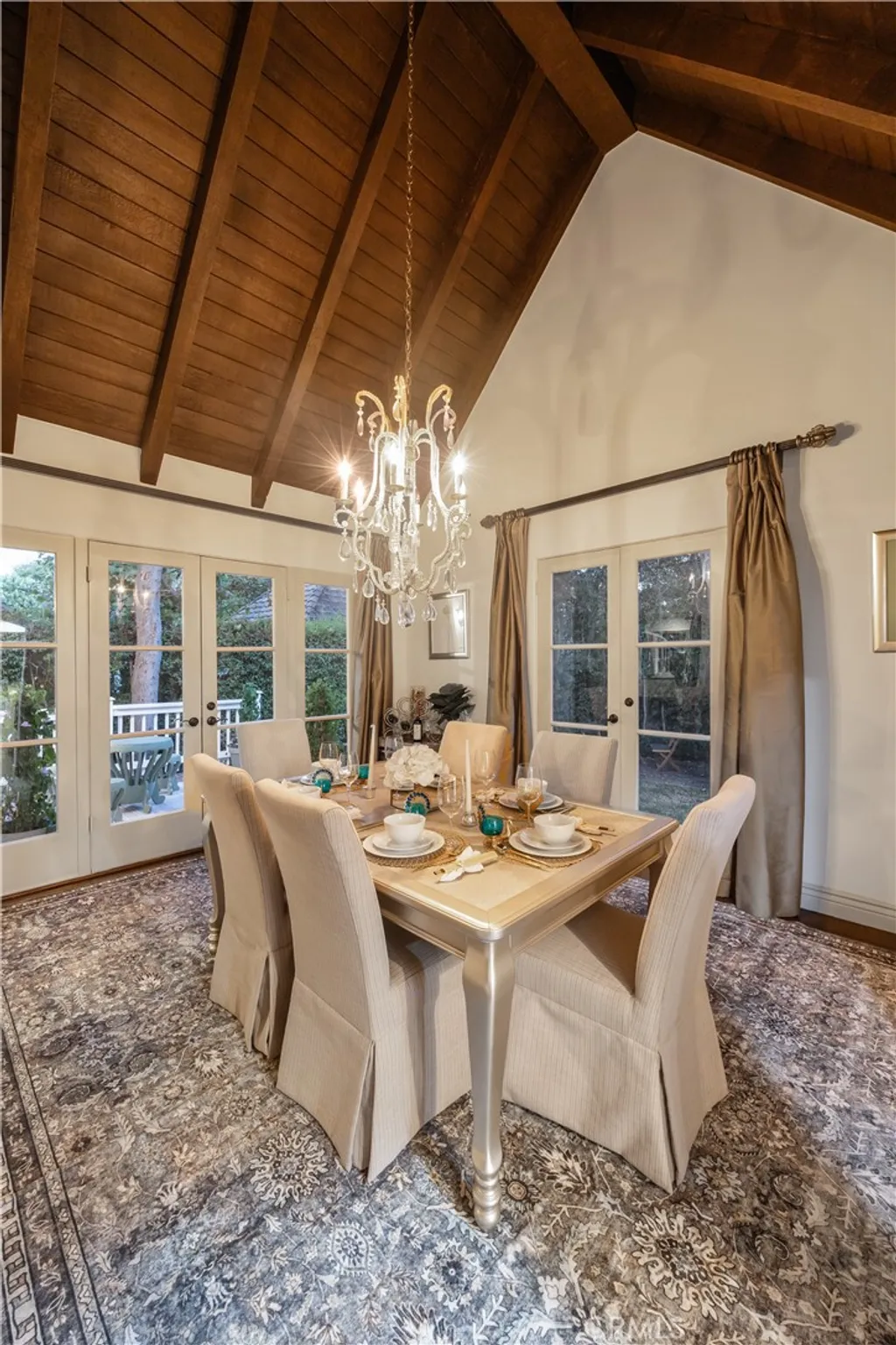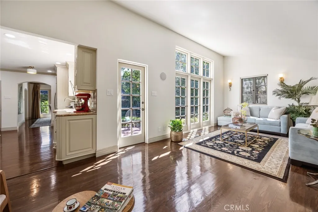 Designed by master architect Roland E. Coate and built in collaboration with esteemed builder Lee S. Davis, this captivating French Normandy-style home is a rare example of early California architectural excellence. Professionally measured at 2,590 sq ft, it combines classic European charm with relaxed indoor-outdoor living, reflecting Coate's visionary philosophy that The patio is the heart of the California house, as noted in House & Garden magazine, 1931. The home's graceful composition features steeply pitched rooflines and a soaring 16-foot high-hipped ceiling with exposed wood beams in the formal dining room. The living room centers on a grand fireplace and is framed by multi-pane windows that fill the space with natural light. Every first-floor room opens through French doors to the surrounding gardens, creating seamless indoor-outdoor flow. Architectural details abound, including arched entryways, crown molding, and crystal chandeliers that enhance the refined character throughout. The floor plan flows effortlessly, balancing open spaces with cozy, intimate areas. Built-in Bluetooth-enabled speakers wired throughout provide an elevated living experience, perfect for entertaining or relaxing. Recent updates include new landscaping, fresh interior and exterior paint, upgraded electrical systems, bathroom mirrors, plumbing, and lighting fixtures (full list available). Step outside to a private brick terrace framed by manicured gardens and mature trees - an idyllic setting for morning coffee, afternoon reading, or romantic dinners. A thoughtful exit from the family room and kitchen opens to a brick-paved patio, perfect for sunset entertaining and gatherings under the stars. Upstairs, spacious bedrooms offer serene mountain and garden views. Situated on a generous 9,256 sq ft lot, a new 70-foot concrete driveway provides parking for four vehicles and leads to an attached two-car garage. A 140 sq ft California basement is also included. This is a rare opportunity to own a piece of architectural history in one of San Marino's most coveted neighborhoods. The home masterfully blends classic charm with modern comfort and gracious hospitality. Reflecting the enduring legacy of Roland E. Coate, it offers a lifestyle rooted in beauty, tranquility, and timeless appeal. Conveniently located near the Huntington Library, Caltech, and within the award-winning San Marino School District, this exceptional residence is truly a cherished treasure.