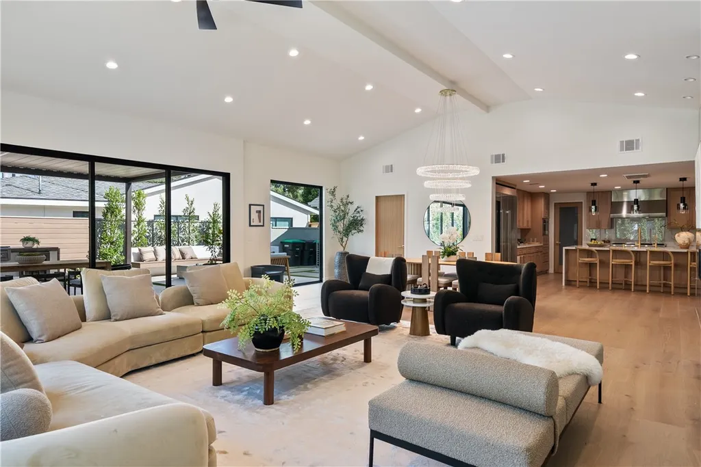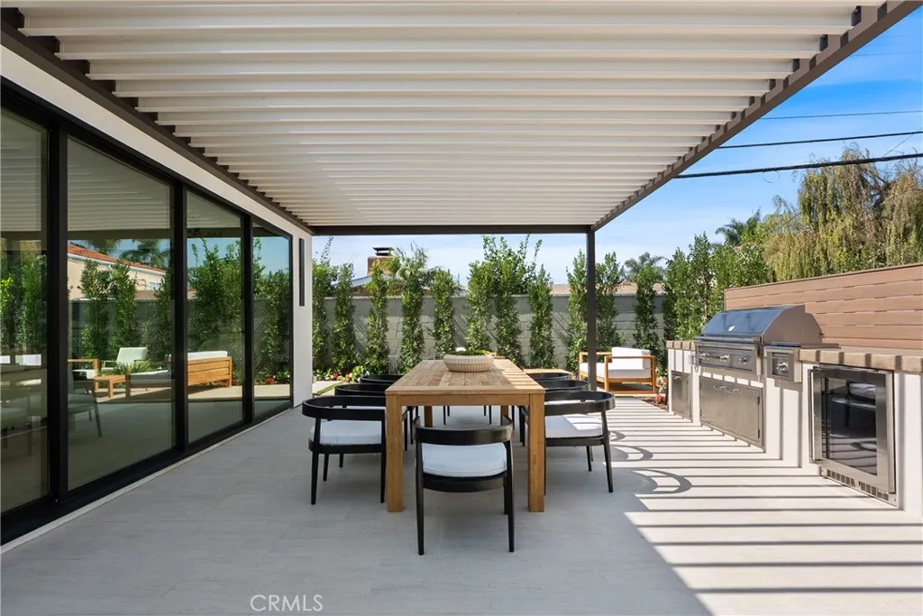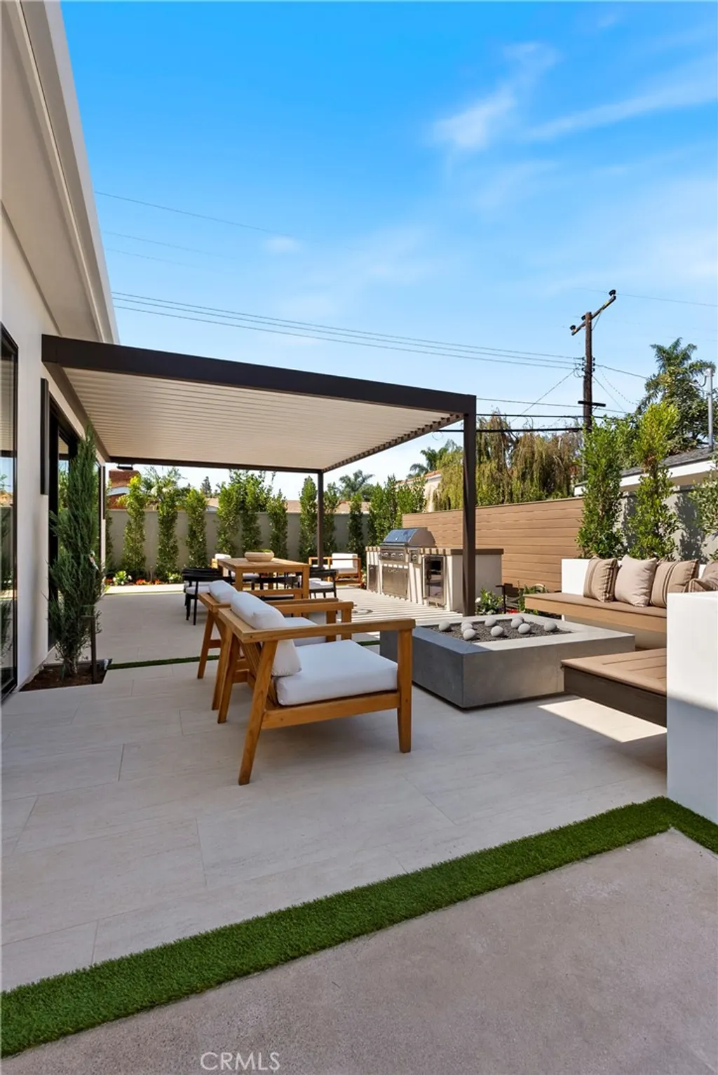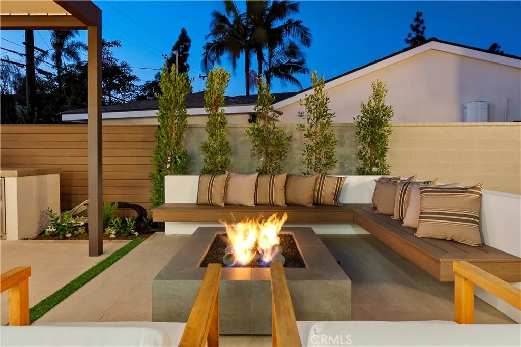 Tucked away on a peaceful, tree-lined cul-de-sac in Mesa Verde, this newly reimagined single-level California Modern Farmhouse blends timeless design with modern sophistication. Every inch of this 3,040 sq ft residence reflects quality craftsmanship, elegant detailing, and thoughtful design. The great room impresses with soaring 14-foot ceilings and expansive MILGARD windows that fill the space with natural light. The open-concept layout flows seamlessly into the backyard, creating an inviting setting for both entertaining and everyday living. The home features 4 spacious bedrooms and 4 beautifully designed bathrooms, all adorned with custom wood paneling, bespoke doors and hardware, and luxurious Phillip Jeffries wall coverings. Engineered oak flooring extends throughout, complemented by Porcelanosa surfaces, a globally recognized Spanish brand known for its sleek finishes and refined durability. At the center of the home, a double-sided Montigo Distinction gas fireplace brings warmth and ambiance to both living areas, adding an element of understated luxury. The chef's kitchen is a true showpiece, equipped with top-of-the-line Wolf appliances, including a 48 dual-fuel range, sub zero column refrigerator and freezer, wine storage, and microwave, paired with satin gold and polished nickel fixtures, custom cabinetry, and a walk-in pantry for added convenience. Outdoors, an over 8,000 sq ft private lot offers a tranquil retreat. The Belgian-made Renson pergola provides year-round comfort with adjustable roof blades, while a fully built Wolf Sedona outdoor kitchen, fire pit with built-in seating, and lush landscaping set the stage for effortless entertaining. Located in one of Costa Mesa's most coveted neighborhoods, this home offers the perfect combination of privacy, community, and convenience, just moments from top-rated schools, dining, shopping, golf, and the beach. More than a home, this is a statement of style, comfort, and California living at its finest.