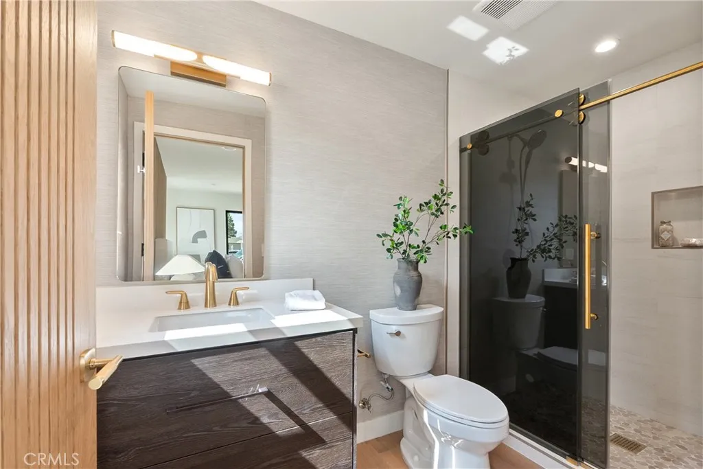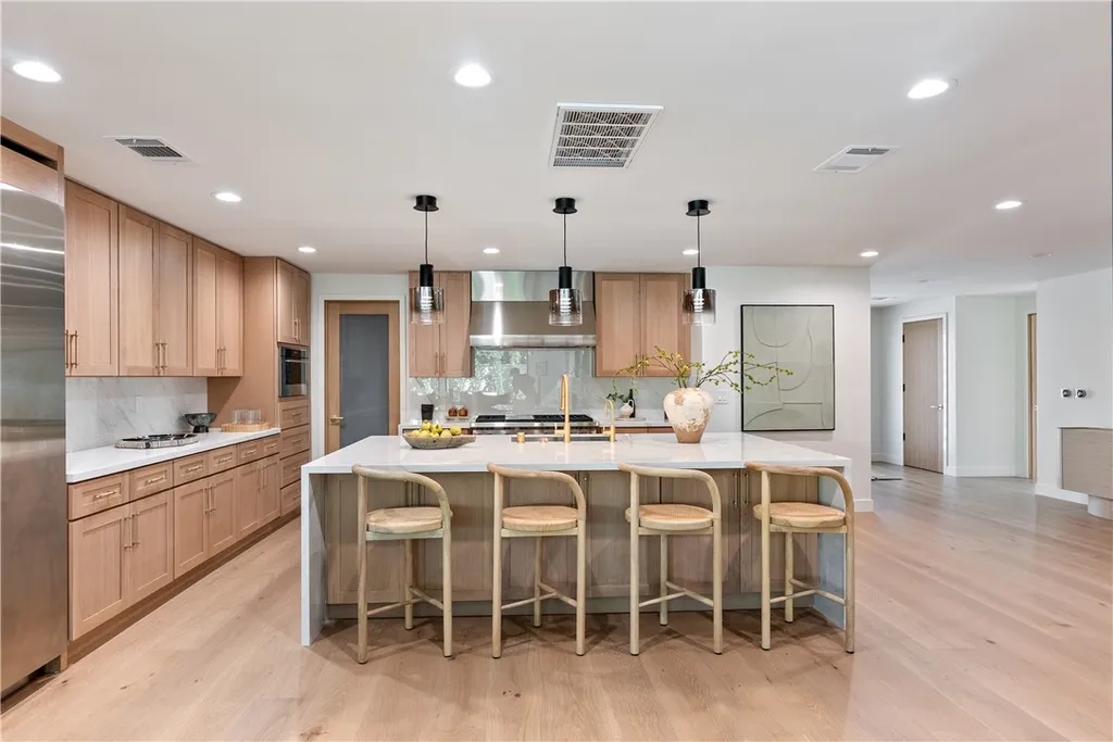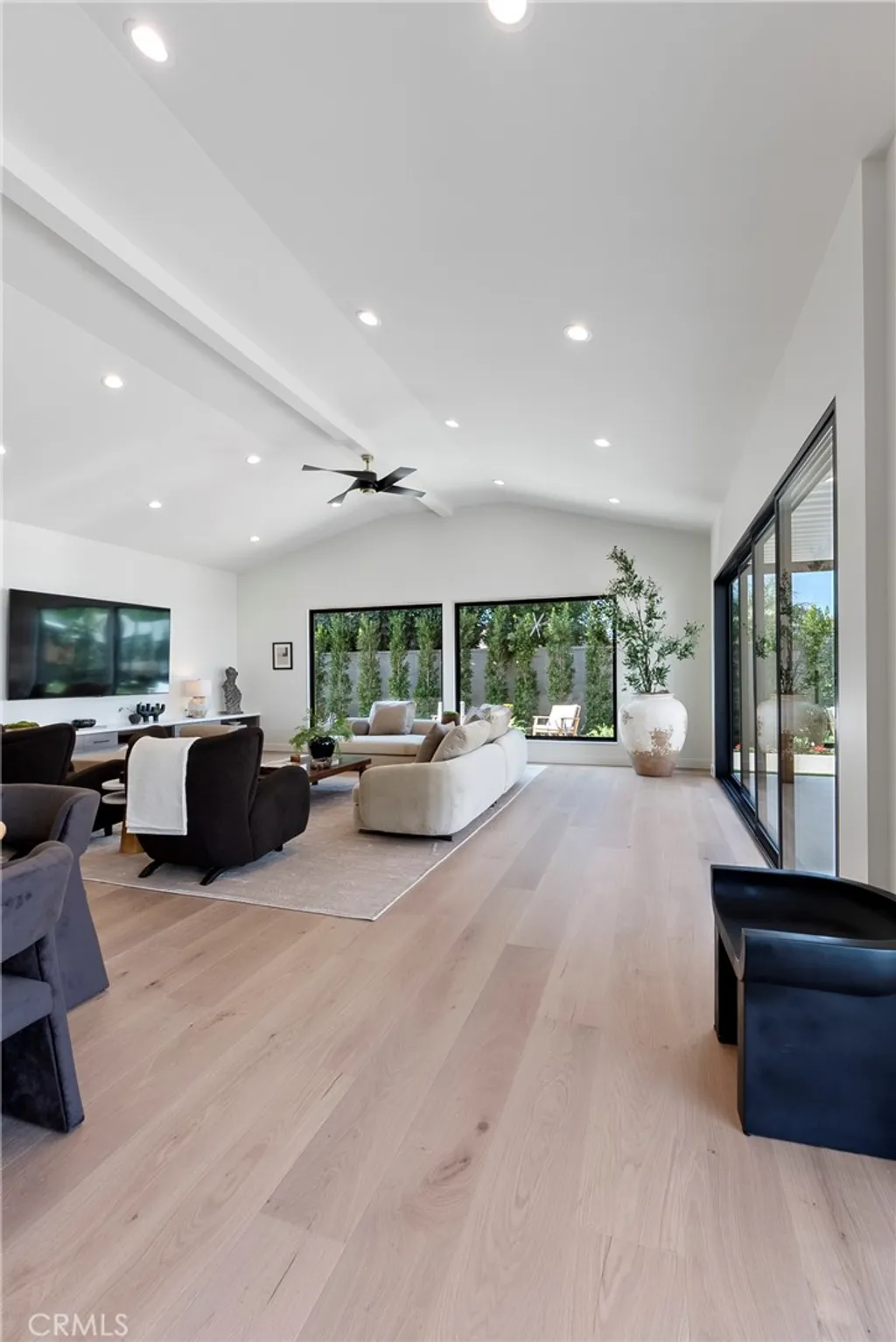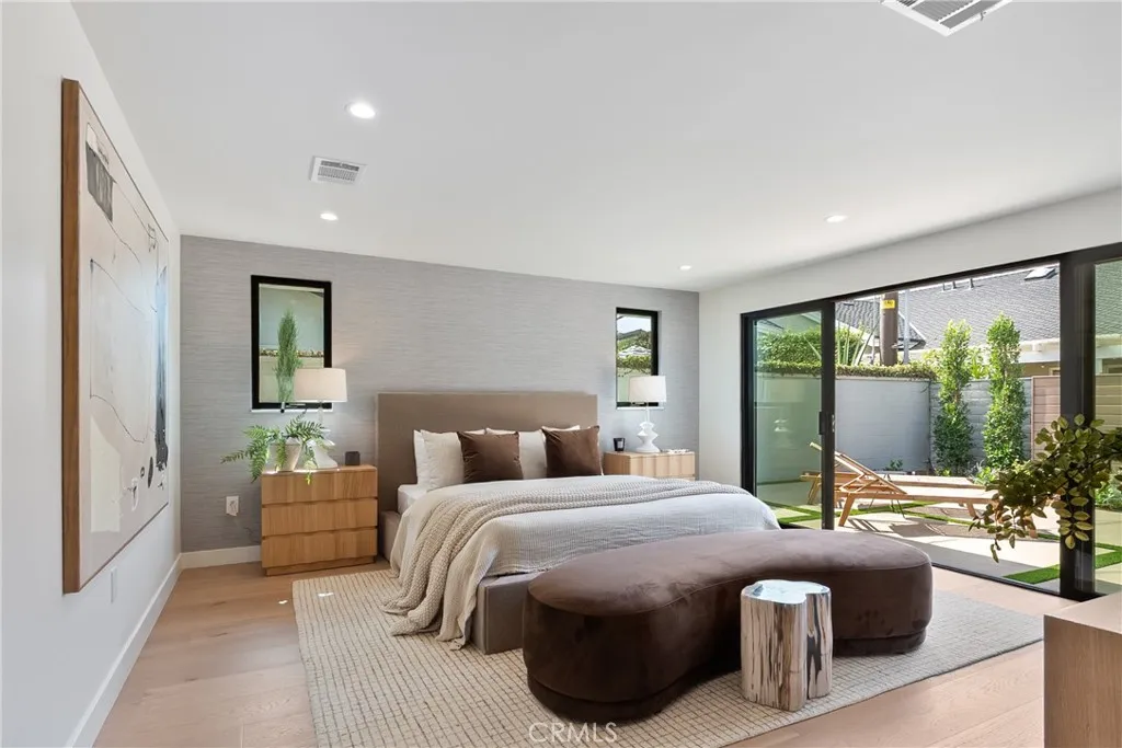 Tucked away on a peaceful, tree-lined cul-de-sac in Mesa Verde, this newly reimagined single-level California Modern Farmhouse blends timeless design with modern sophistication. Every inch of this 3,040 sq ft residence reflects quality craftsmanship, elegant detailing, and thoughtful design. The great room impresses with soaring 14-foot ceilings and expansive MILGARD windows that fill the space with natural light. The open-concept layout flows seamlessly into the backyard, creating an inviting setting for both entertaining and everyday living. The home features 4 spacious bedrooms and 4 beautifully designed bathrooms, all adorned with custom wood paneling, bespoke doors and hardware, and luxurious Phillip Jeffries wall coverings. Engineered oak flooring extends throughout, complemented by Porcelanosa surfaces, a globally recognized Spanish brand known for its sleek finishes and refined durability. At the center of the home, a double-sided Montigo Distinction gas fireplace brings warmth and ambiance to both living areas, adding an element of understated luxury. The chef's kitchen is a true showpiece, equipped with top-of-the-line Wolf appliances, including a 48 dual-fuel range, sub zero column refrigerator and freezer, wine storage, and microwave, paired with satin gold and polished nickel fixtures, custom cabinetry, and a walk-in pantry for added convenience. Outdoors, an over 8,000 sq ft private lot offers a tranquil retreat. The Belgian-made Renson pergola provides year-round comfort with adjustable roof blades, while a fully built Wolf Sedona outdoor kitchen, fire pit with built-in seating, and lush landscaping set the stage for effortless entertaining. Located in one of Costa Mesa's most coveted neighborhoods, this home offers the perfect combination of privacy, community, and convenience, just moments from top-rated schools, dining, shopping, golf, and the beach. More than a home, this is a statement of style, comfort, and California living at its finest.