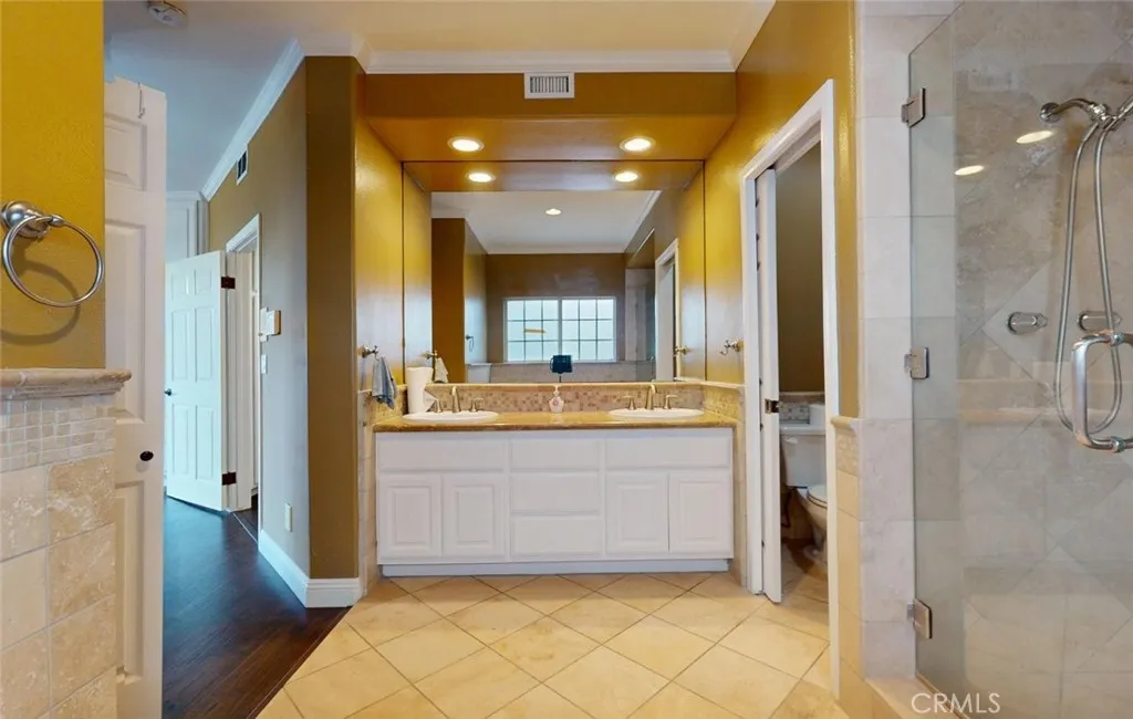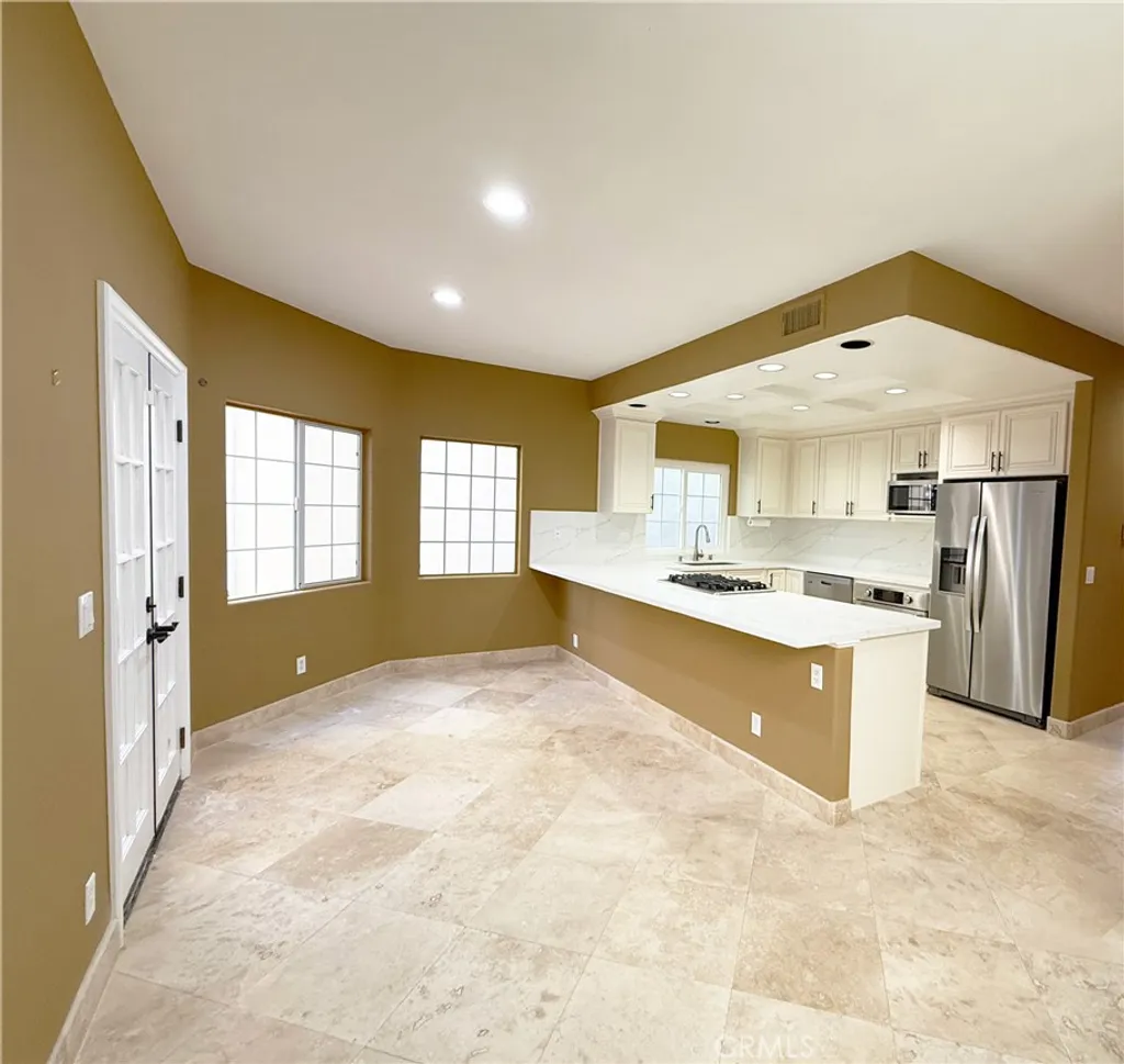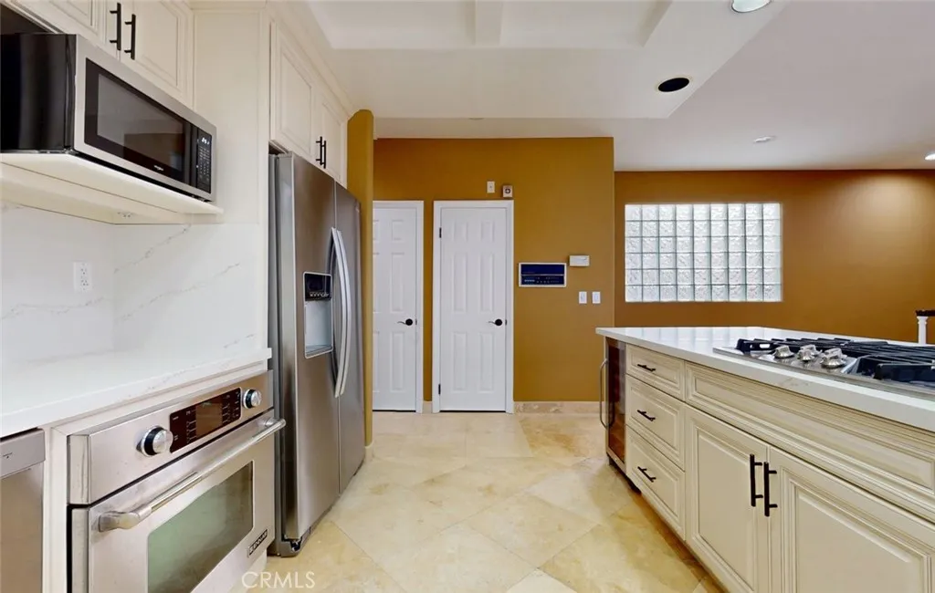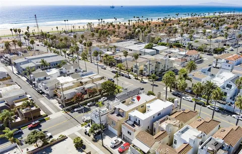 Stunning Tuscany-style coastal gem just two blocks from the sand on an elevated lot! This bespoke trilevel residence blends elegance with beachside ease, offering nearly 3,000 sq ft of living space. Enter the private front door into an open formal living and dining layout with wide windows, a fireplace, and French doors that flow to a front patio. The entire first floor is finished with elegant travertine flooring. The recently remodeled gourmet kitchen showcases modern quartz countertops, soft-close cabinetry, and a generous eat-in large counter adjacent to a cozy nook with French doors opening to a private courtyard. The mid-level includes a 2-story, towering family room with a fireplace. The master suite is your sanctuary - private balcony, fireplace, spa bath, built-in cabinetry, and walk-in closets. In the rear is a secondary bedroom with an en-suite bath. The top floor hosts a third bedroom with a full bath, a generous office nook, and dual rooftop terraces with peekaboo ocean view. In addition to a 2-car garage, this home boasts a full-length driveway - a rare luxury in Huntington Beach - providing ample parking. With exquisite finishes and walking distance to the beach, parks, shops, and Main Street, this home captures the best of coastal living.