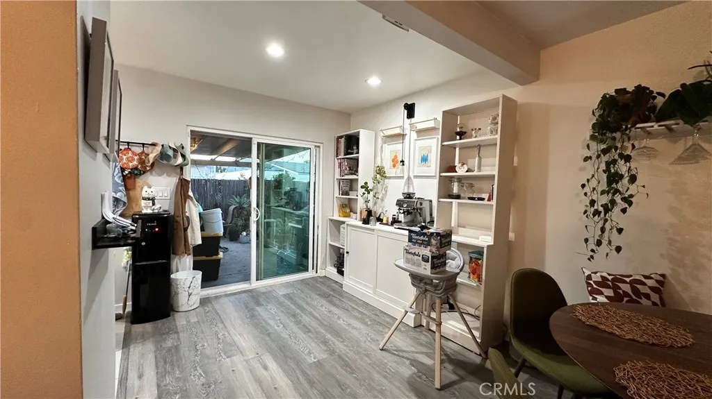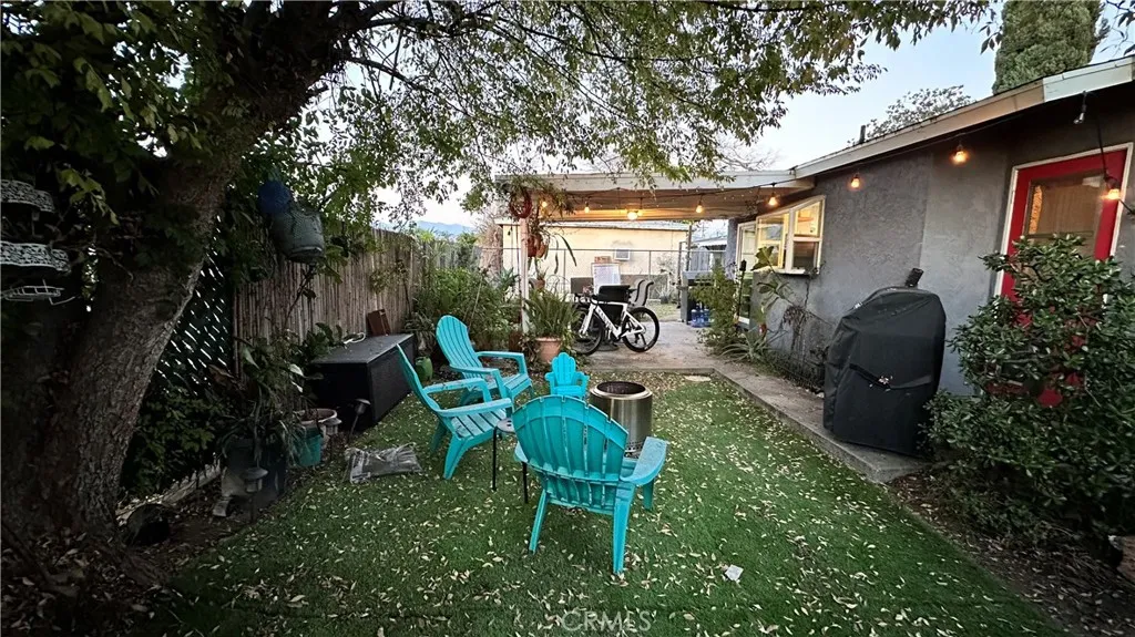 Charming and thoughtfully updated, single-story home blends modern comfort with warm character and outdoor living. Inside, enjoy a light-filled open living space featuring wide-plank flooring, recessed lighting, ceiling fans, and a clean contemporary aesthetic throughout. The kitchen and adjacent dining areas flow seamlessly into the living space, creating an ideal layout for everyday living. The 3 bedrooms are generously sized. The updated bathrooms feature classic subway tile, modern finishes, and a walk-in shower. Step outside to a private backyard designed for year-round enjoyment. A covered patio with string lighting sets the stage for outdoor dining and entertaining, while the landscaped yard offers space to relax, garden, or gather around a fire pit. The property also features a driveway with off-street parking and a welcoming front yard. Tastefully styled and move-in ready, this home is perfect for buyers seeking comfort, functionality, and inviting indoor-outdoor living in a charming residential setting.