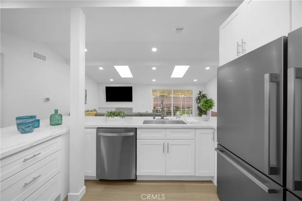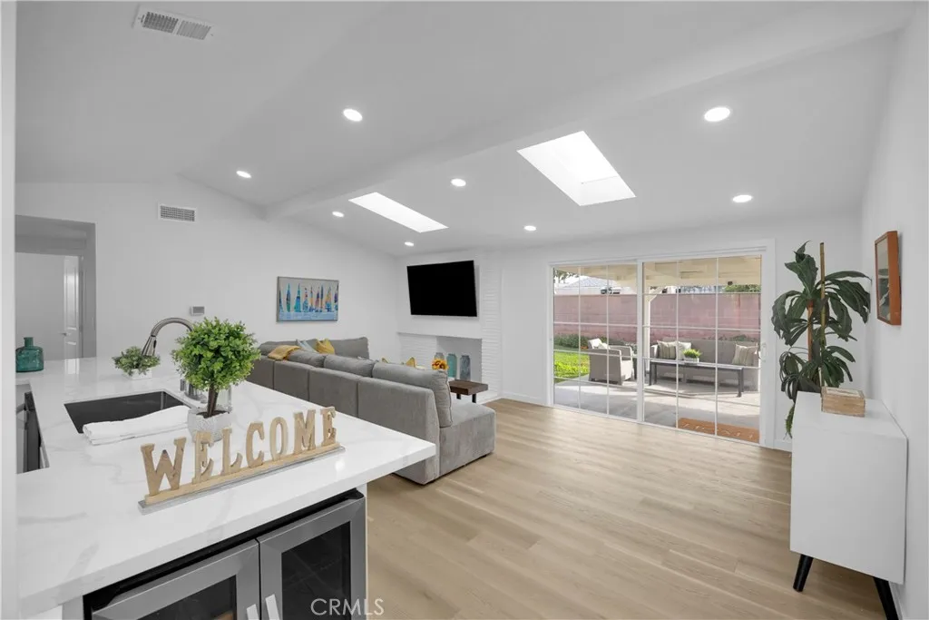 Welcome to 5884 Los Encinos Street, a $300k Fully Rebuilt Single Story Home in one of Buena Parks Most Desirable Neighborhoods. This four bedroom, two bathroom showplace lives like brand new construction, with every surface and every system thoughtfully upgraded. The moment you walk in, the home opens into a bright and expansive great room with vaulted ceilings, multiple skylights, a modern fireplace feature, and wide sliding doors that create a seamless indoor and outdoor flow. The kitchen is the true centerpiece of the home, offering an oversized dual sided quartz bar seating, custom cabinetry, a 48 inch stainless steel professional stove and oven, a full double refrigerator and freezer setup, and a signature mounted television above the range for those dual service Super Bowl parties. The open layout connects naturally to the living and dining areas, making this home ideal for family gatherings and entertaining. A Bonus room that works beautifully as a playroom, office, studio, or second living space with direct exterior access. Remodeled Guest Bath with new fixtures, and modern designer finishes. Double size Primary Suite with 16' of mirrored wardrobes and new luxurious Bathroom. New Luxury Wood Plank Vinyl Flooring and Extensive Lighting throughout! Fully upgraded electrical and plumbing system including a new panel, full repipe, and a brand new roof. The attached garage has also been finished with luxury vinyl plank flooring, creating a clean and versatile space for storage, a gym, or hobbies. The backyard offers a large covered patio for year round outdoor living along with a private grassy yard framed by block walls and flowering planters. It is a quiet space that is perfect for relaxing, grilling, or letting kids and pets play. Great Location near Cypress Junior College, Parks, Schools and Shopping! This turnkey property delivers modern comfort, thoughtful upgrades, and a floor plan that truly works for everyday living. NO MAINTENANCE FOR 30 YEARS?!