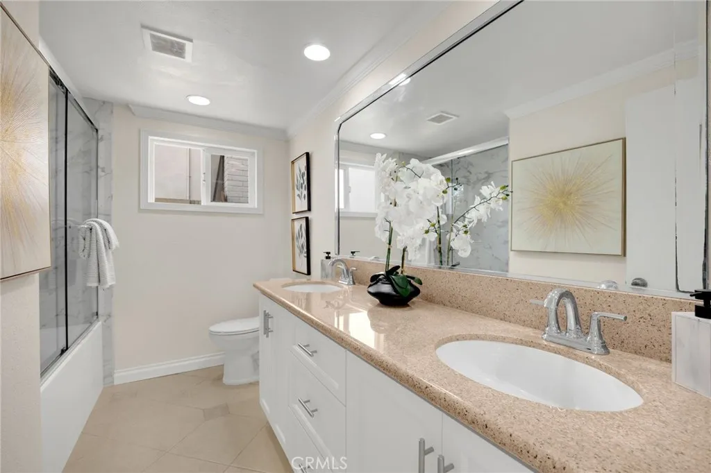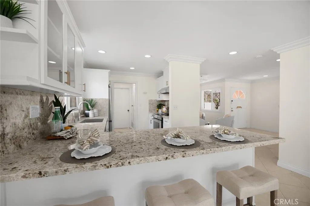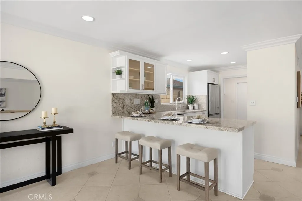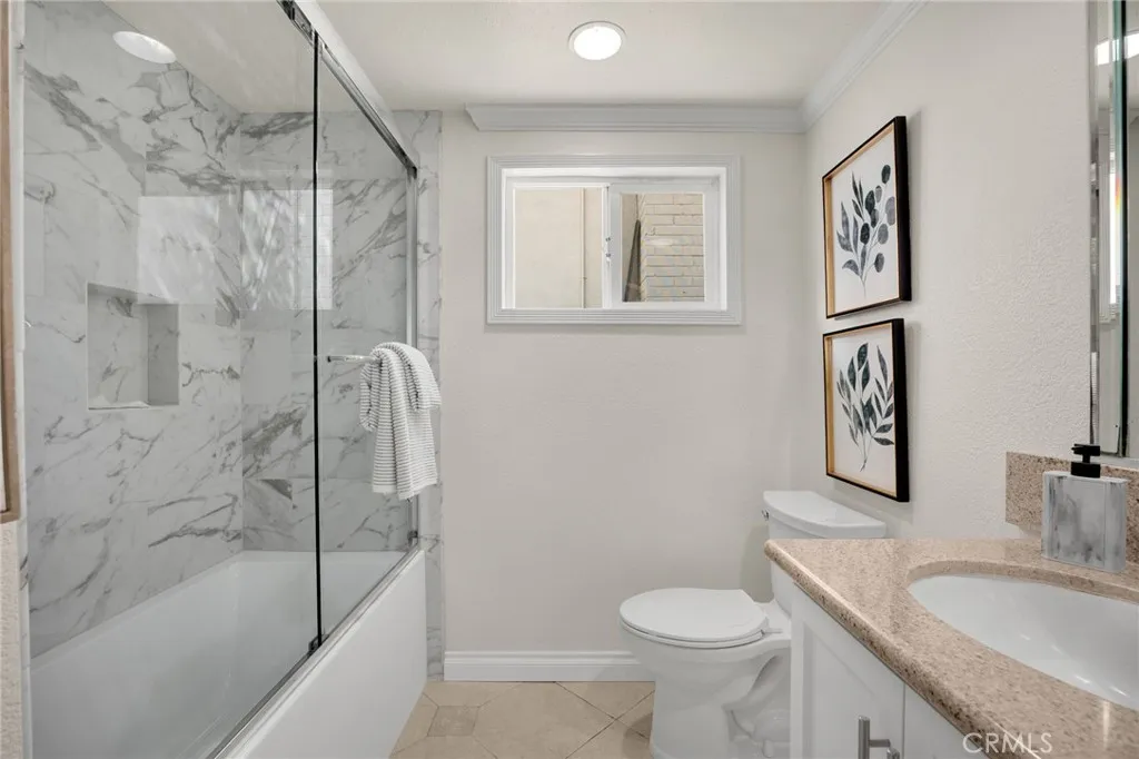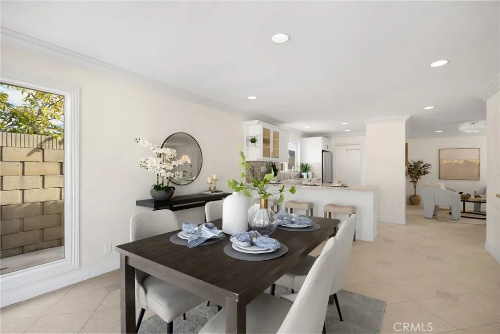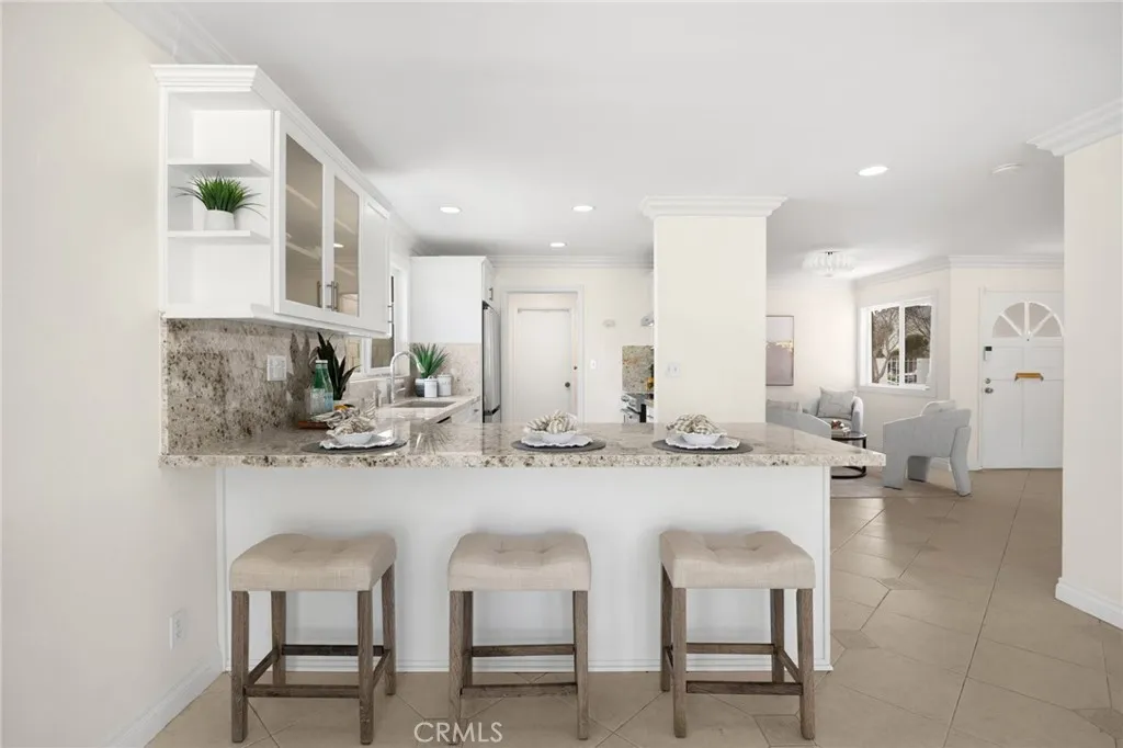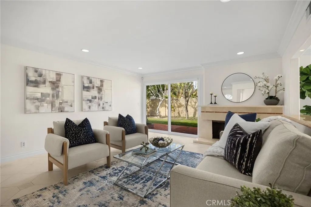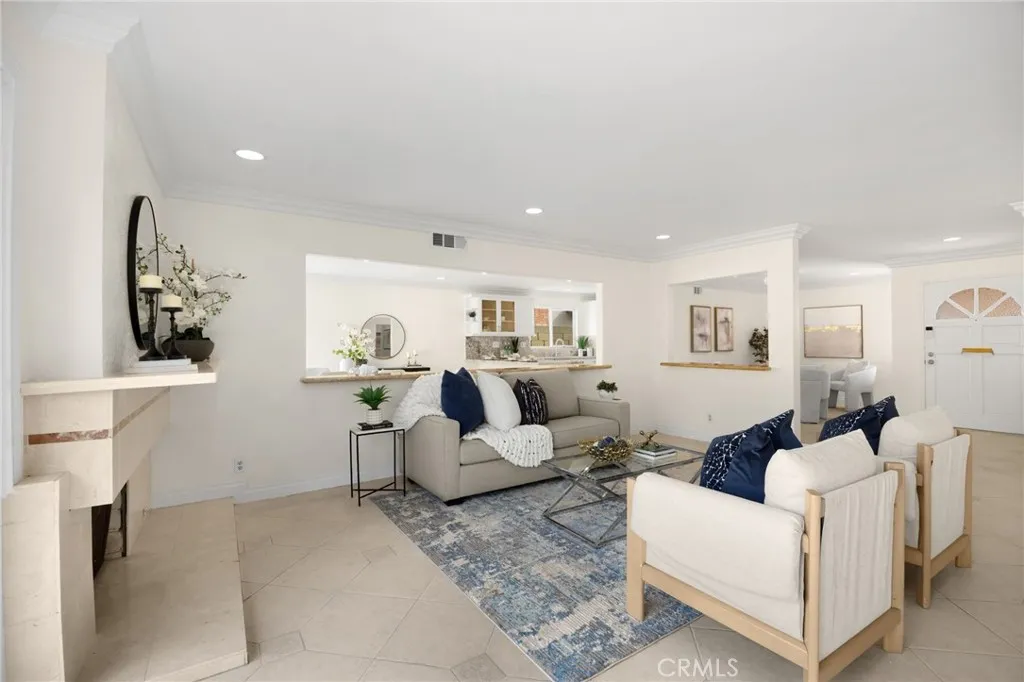 Welcome to this 4-bedroom, 2-bath home in Goldenwest Estates. Upon entering, you're greeted by a grand living room and adjoining family room offering endless layout possibilities. This expansive space is filled with natural light from two large glass sliders and an oversized window, creating a bright, open feel that truly brings the outdoors in. A formal dining or sitting area sits just off the main living space, adding even more flexibility to the floorplan. The newly remodeled kitchen features white shaker cabinetry, new granite countertops, brand-new refrigerator and stove, and a walk-in pantry. The kitchen bar opens to the family and dining areas with direct access to the backyard - perfect for entertaining. Just off the kitchen is an inside laundry room with direct access to the two-car garage with built-in storage and attic space.The primary suite includes a walk-in closet and a remodeled bathroom with upgraded vanity and walk-in shower. The guest bathroom features dual sinks, a new vanity, and a newly designed tub/shower. Three additional bedrooms are spacious, with one ideal for a home office. The private backyard features new brick pavers and walkway, block wall fencing, and mature fruit trees - ideal for relaxing or hosting gatherings. Additional upgrades include new front yard walkway pavers to the courtyard, fresh interior paint, new A/C, water heater, and full re-piping. Conveniently located close to the beach, top-rated schools, parks, and Bella Terra shopping and dining.