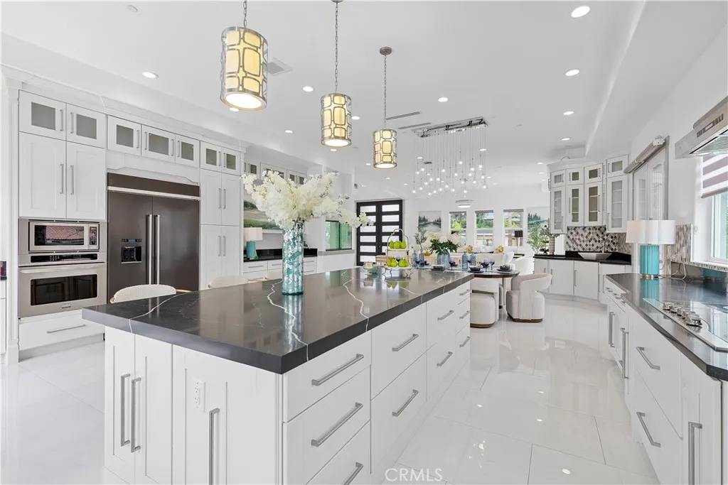 Welcome to 7702 Alberta Dr., a custom-built luxury retreat on a prime corner lot in Huntington Beach, offering approximately 4,300 sq ft of thoughtfully designed living space with no HOA. Built in 2019 as a personal vision for retirement, this home features five master suites - including ensuite bedrooms on the first floor and a fully permitted Junior ADU upstairs with its own private entrance - plus 5.5 bathrooms and two steam rooms for spa-like relaxation. Artistic finishes and premium materials elevate every detail, from the $12,000 artisan front door to the custom staircase, kitchen, and bathrooms, each with its own unique flair. Soaring 12-foot ceilings, abundant natural light, and excellent airflow enhance the sense of space and serenity, while the oversized three-car garage offers ample room for vehicles, storage, or a workshop. With a solar lease of approximately $250/month, this home blends energy efficiency with high-end comfort. It's a masterpiece of care, creativity, and quality, built to inspire and endure.