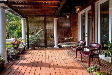 Built for the person who entertains with grace. This home commands attention with impressive scale and refined details. Grand-Scale Entertainment: The show-stopping ~900 ft. living room features soaring clear redwood cathedral ceilings, gleaming quarter-sawn oak floors, and expansive windows overlooking your private Secret Garden. Step outside to the ~1,000 ft. main deck - an entertainer's paradise. Flow seamlessly through the ~900 ft. family room connecting your stately ~750 ft. covered front porch to dual outdoor sanctuaries: a ~250 ft. front deck and ~300 ft. back deck with fountain feature, all accessed through 6 large French doors. Luxurious Private Retreat: Your ~850 ft. primary suite is pre-plumbed for gas fireplace installation - a serene escape from the world. Modern Living, Prime Location. Tesla Powerwall for energy reliability, Fire sprinklers throughout, Expansion potential: 2 bedrooms + bath above garage, bus stop across the street, walk to top-rated elementary (0.5 mi) and middle school (0.6 mi), Downtown (1 mi). Privacy with panoramic views This isn't just a home - it's your launchpad for sophisticated living with unbeatable walkability and luxury at every turn.