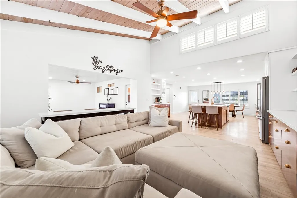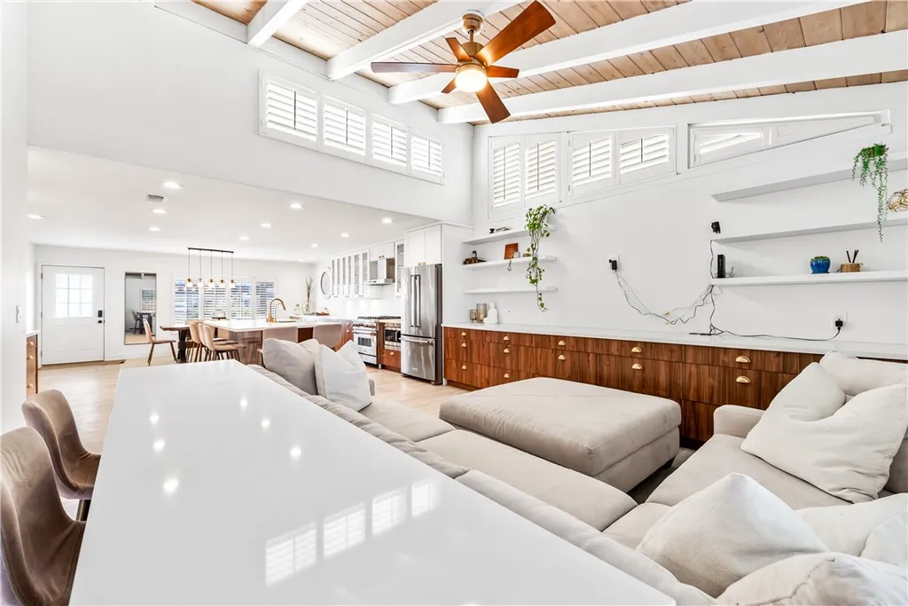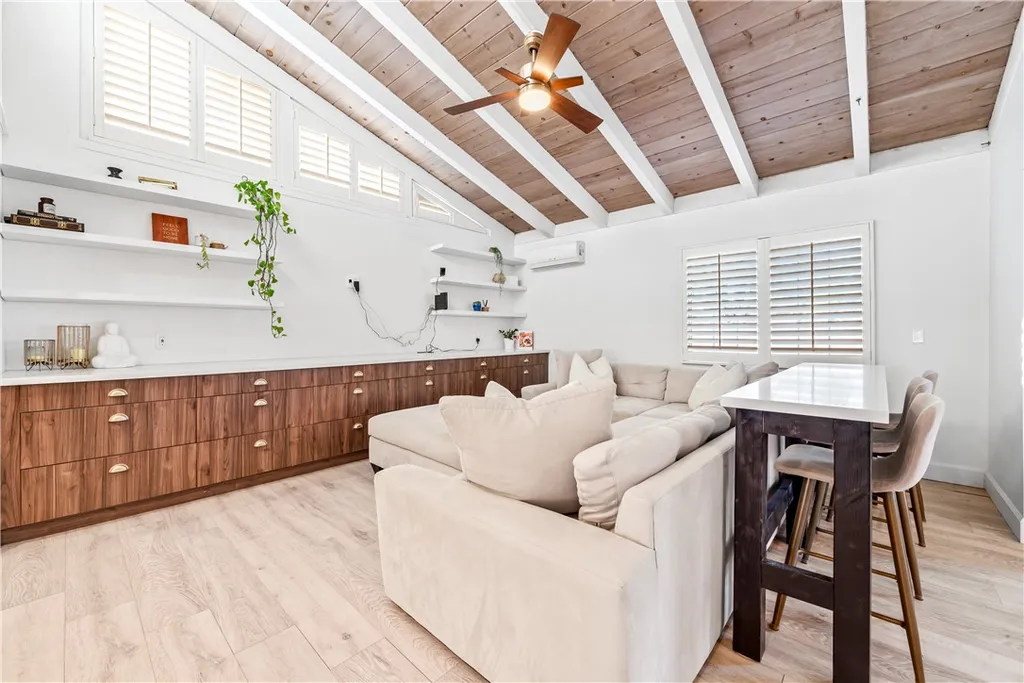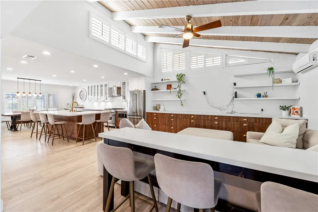 Welcome to your dream house! Extra bonus room 270 sf. This open concept single story home is move-in ready. Enter the gate to find an expansive, low maintenance front yard that's perfect for entertaining. The beautifully designed interior is similarly well suited to entertain, featuring a 9 feet long, 52 inch wide kitchen island, recessed lighting, and modern appliances including a wine cooler. The kitchen cabinets conveniently span across the dining and living room. The master bedroom features a walk-in closet. The finished garage doubles as a workspace, including a mini split and recessed lighting. Conveniently located near Five Points plaza, you have everything you need to embrace the Huntington Beach lifestyle.