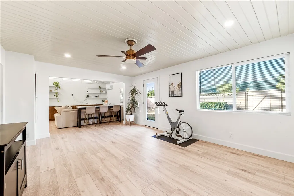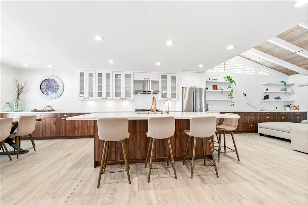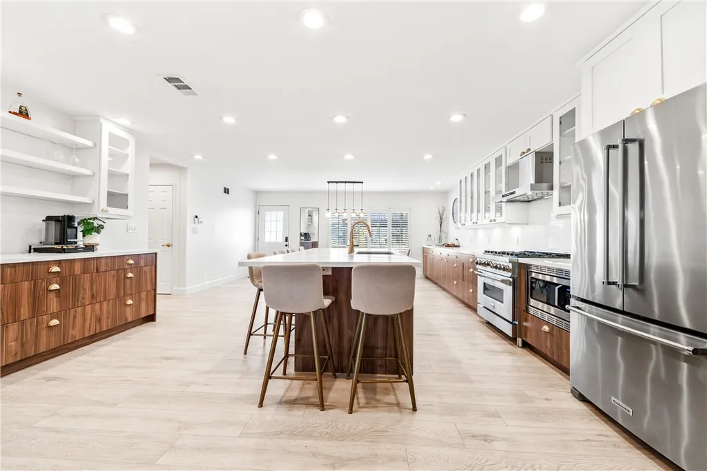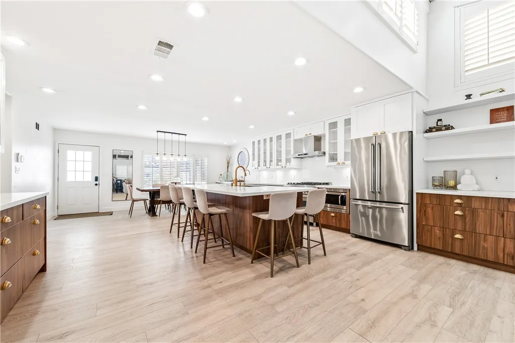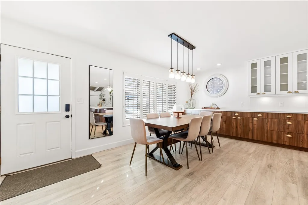 Welcome to your dream house! Extra bonus room 270 sf. This open concept single story home is move-in ready. Enter the gate to find an expansive, low maintenance front yard that's perfect for entertaining. The beautifully designed interior is similarly well suited to entertain, featuring a 9 feet long, 52 inch wide kitchen island, recessed lighting, and modern appliances including a wine cooler. The kitchen cabinets conveniently span across the dining and living room. The master bedroom features a walk-in closet. The finished garage doubles as a workspace, including a mini split and recessed lighting. Conveniently located near Five Points plaza, you have everything you need to embrace the Huntington Beach lifestyle.