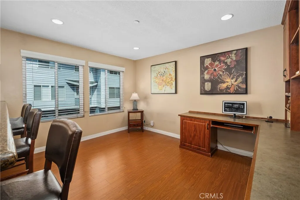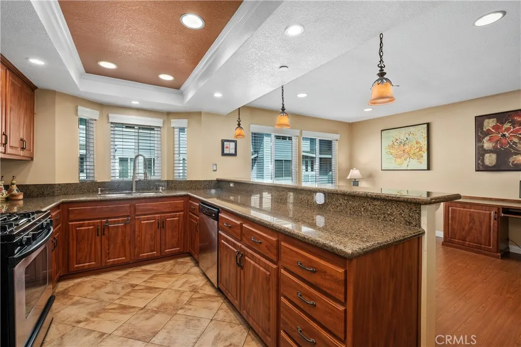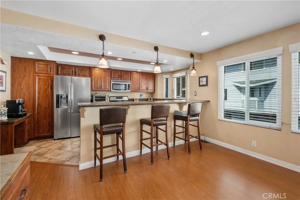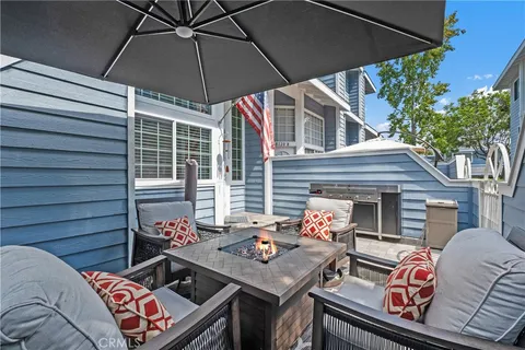 Soak in the serenity from the front courtyard of this beautiful Cape Cod style townhome in fabulous Seawind Cove. The interior has been thoughtfully updated with brand new carpet and new vinyl windows (2025) and includes a remodeled kitchen with refaced cabinetry, recessed lighting, and a wraparound granite breakfast peninsula with overhead pendant lighting. A newly tiled fireplace with custom mantel represents the centerpiece of the tall, vaulted ceiling living room, while elegant wood railings with wrought iron spindles highlight the dining room and stairwells. The upper level includes 3 large bedrooms with a well-appointed primary complete with a luxurious en-suite bathroom offering a spa-like tub, dual vanities, separate shower, and a spacious walk-in closet. The gated community itself is equally impressive, with a sparkling pool, relaxing spa, and a well-appointed clubhouse. Recent HOA improvements include newer roofs, siding, fresh paint, rebuilt composite patios, and newly paved asphalt streets.