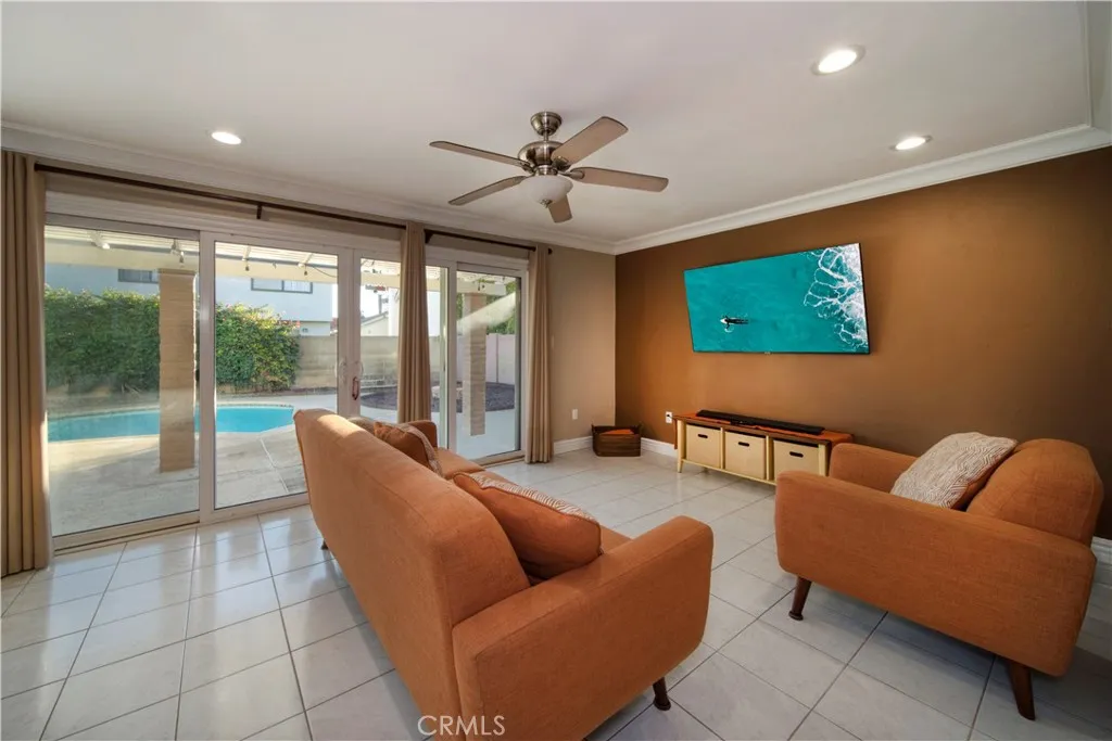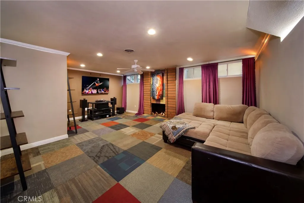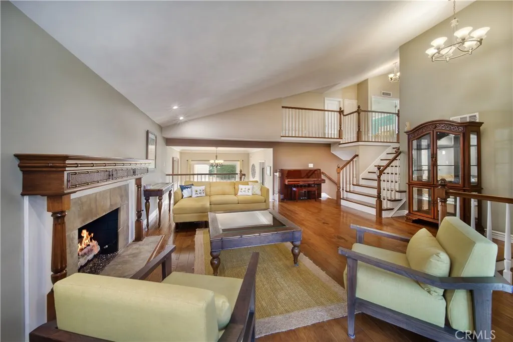 SOUTH HUNTINGTON BEACH - With generous proportions, four spacious bedrooms and large, beautifully maintained grounds, this stylishly upgraded home offers room to grow in the heart of Huntington Beach. Located near the end of a quiet cul-de-sac street, the open split-level design extends approximately 2,780 square feet and showcases a double-door entrance, vaulted ceilings, large windows and a dramatic multi-tiered staircase. Impressive entertaining is easy in a living room with custom fireplace and a formal dining room with crown molding and direct access to the backyard. Sliding-glass doors open the family room to the backyard as well, and the adjacent kitchen is embellished with granite countertops, stainless steel appliances, white cabinetry and a peninsula-style breakfast bar. As an added bonus, this inviting residence offers an extra-rare, fully finished basement complete with a fireplace. Two- and one-half baths are updated with today's popular finishes and fixtures, and the primary suite hosts a vaulted and beamed ceiling, handsome accent wall, French doors opening to an expansive balcony, a walk-in closet with custom built-ins, and an en suite bath with tiled shower and two sinks. Custom recessed lighting illuminates living spaces that are enhanced with wood and tile flooring, crown molding, a soothing color palette, ceiling fans and elegant lighting fixtures. Grounds span approximately 5,459 square feet and include a private backyard with pool. Perry Elementary School is just steps from home, and shopping centers, beautiful city parks, miles of sandy beaches, Huntington Beach's famous pier, and the vibrant Pacific City are just minutes away.