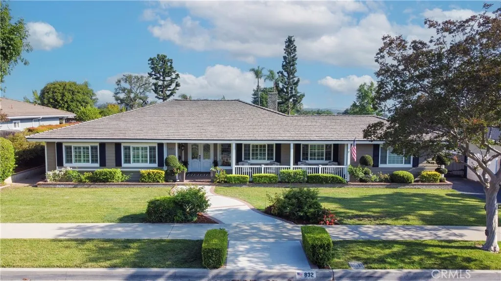 Welcome to this beautifully updated single story home in the heart of North Glendora, where timeless charm meets modern upgrades in every detail. Nestled on a quiet street in a highly sought-after neighborhood, this entertainer's dream offers an inviting open-concept layout and a spectacular backyard oasis. Step inside to discover hardwood flooring laid on a unique 45-degree angle, vaulted ceilings with exposed beams, and a stunning kitchen remodeled in 2022. The kitchen features custom cabinetry with crown moulding, granite countertops, a farmhouse sink, built-in drawer-style microwave, double-drawer dishwasher, stainless steel appliances, under-cabinet lighting, and soft-close, extra deep drawers. A large pantry with pull-out shelves, coffee bar area, and breakfast bar complete this entertainer's kitchen, seamlessly opening to the spacious family and dining areas. French doors lead to a backyard paradise with a resurfaced and retiled pool and spa (2023), gas firepit, outdoor lighting, automatic sprinklers, and a custom drive through gate. Inside, the primary suite is a serene retreat with vaulted ceilings, a walk-in closet with built-ins and barn doors, and a spa-inspired bathroom remodeled in 2023 featuring a custom frameless glass shower and soft-close cabinetry. Additional highlights include: a full bathroom with Jacuzzi tub and frameless enclosure, upgraded vinyl windows, plantation shutters, crown and base moulding, custom solid-core bedroom doors, and hallway cabinetry. All exterior walls have been insulated, with new R30 attic insulation throughout. A separate laundry room includes custom cabinetry and unique tile flooring, adjacent to a guest bath. Bonus attic room is carpeted and air-conditioned, and there's a dedicated office space with built-in cabinetry. The home also boasts a custom oversized front porch, automatic holiday light outlets in the eaves, closet organizers in all bedrooms, brick planters, and a newly remodeled gas fireplace with custom mantle and rock detail. This is a rare opportunity to own a truly turnkey property in one of Glendora's most desirable neighborhoods!